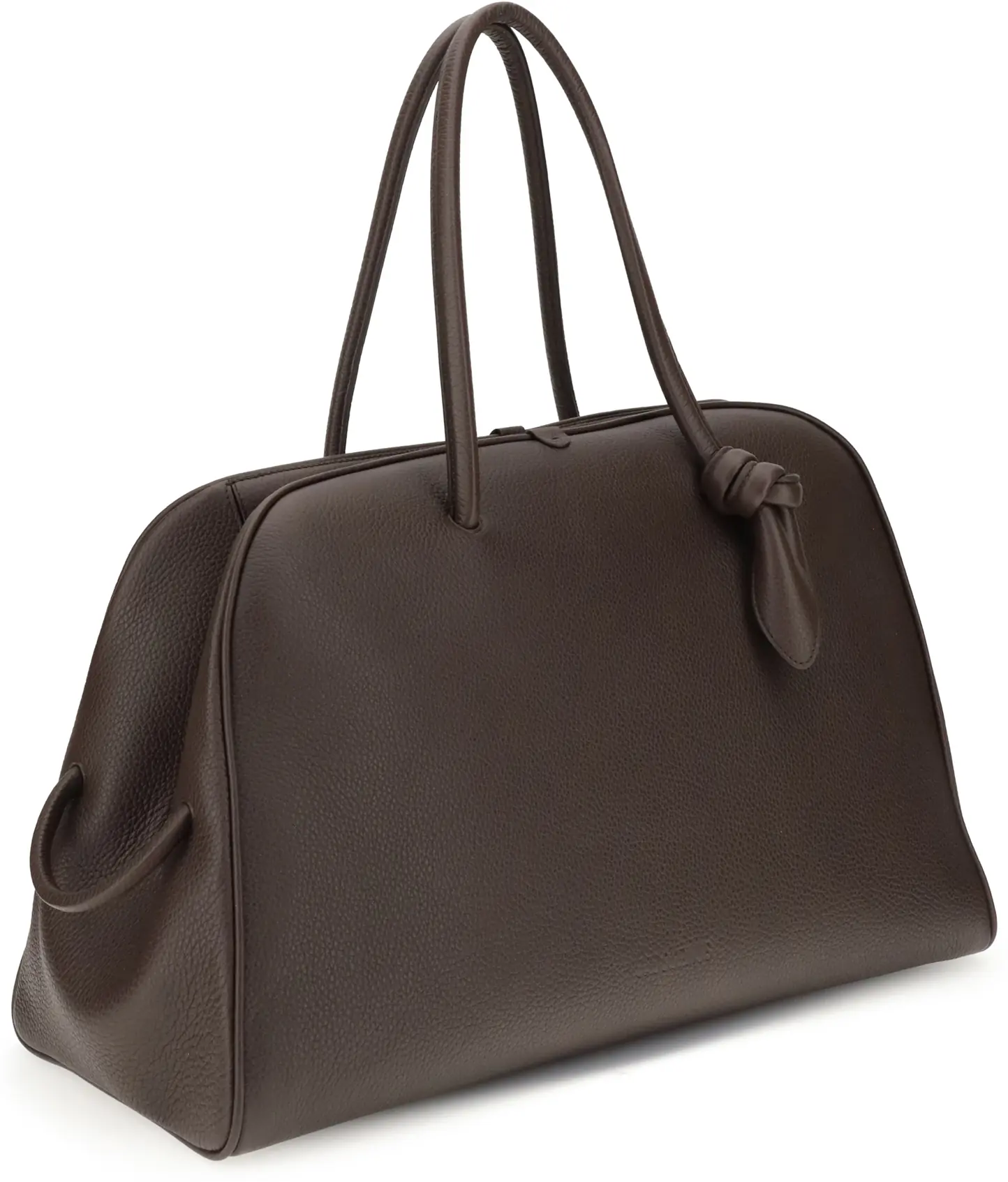 The Le Grand Tourisme Travel Bag by Jacquemus reinterprets the classic bowling bag in a modern and sophisticated key. Made of grained leather, it features a structured and functional design with a two-way zipper closure, interior zipper pocket and a large patch pocket on the front. The bow detail, the Maison's poetic signature, adds a distinctive and feminine touch. Perfect for weekend getaways or as an elegant carry-on.