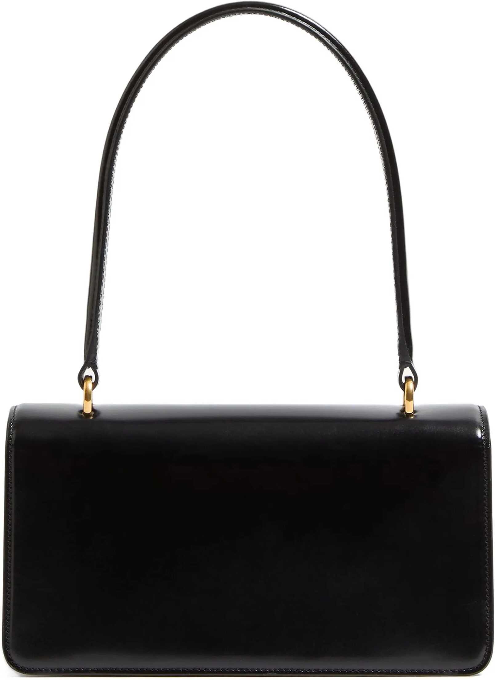 Black glossy calf leather bag. Features a fixed top handle, antique gold-tone metal VLogo, magnetic button closure on the flap, two internal compartments, a zip pocket, and card slots. Dust bag included. Any imperfections in the leather are not to be considered manufacturing defects, but rather a unique characteristic of the material.