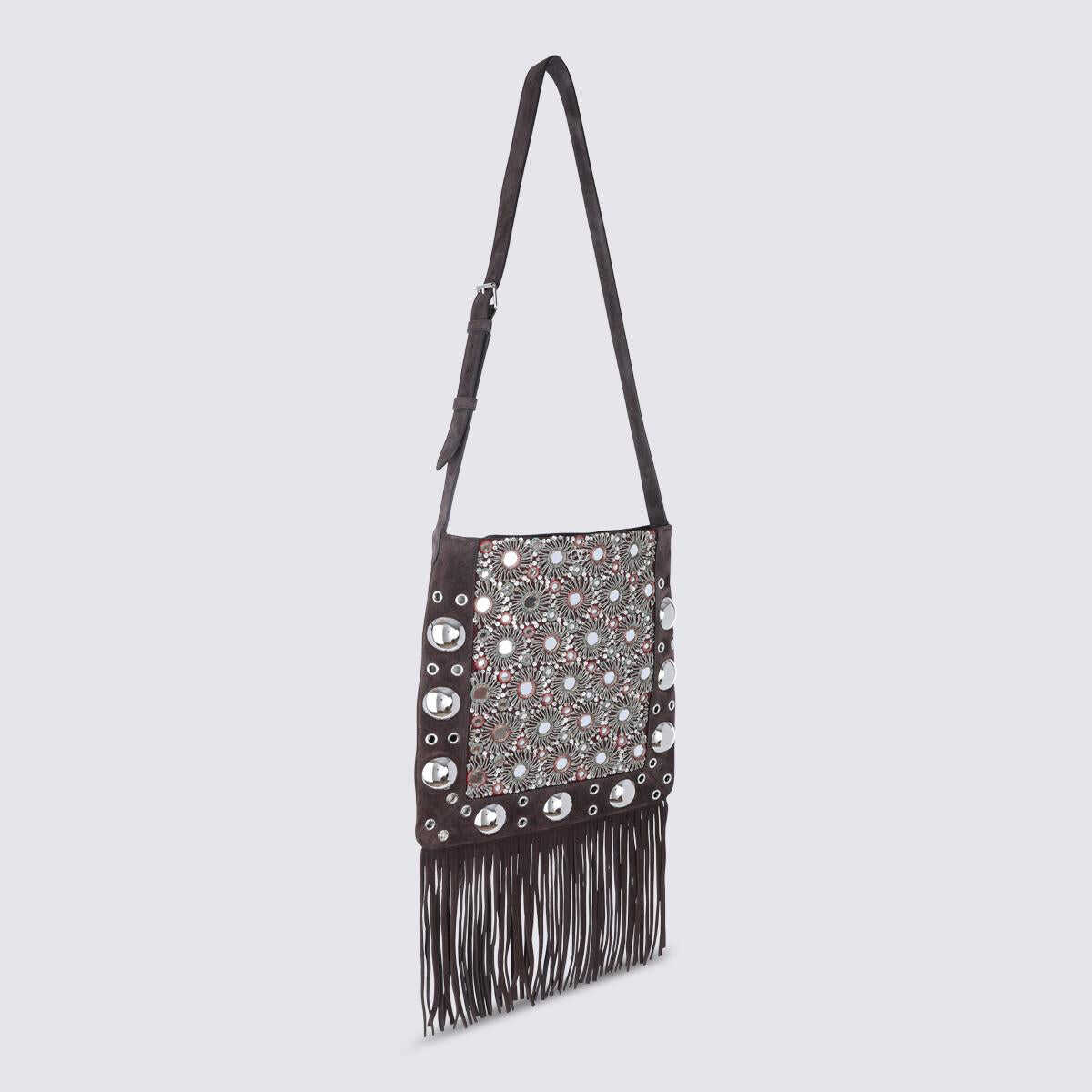 Brown Nellcote shoulder bag from Valentino Garavani featuring strap with buckle fastening, silver tone hardware, fringed hem, inside pocket and upper fastening. Size Type: Unique