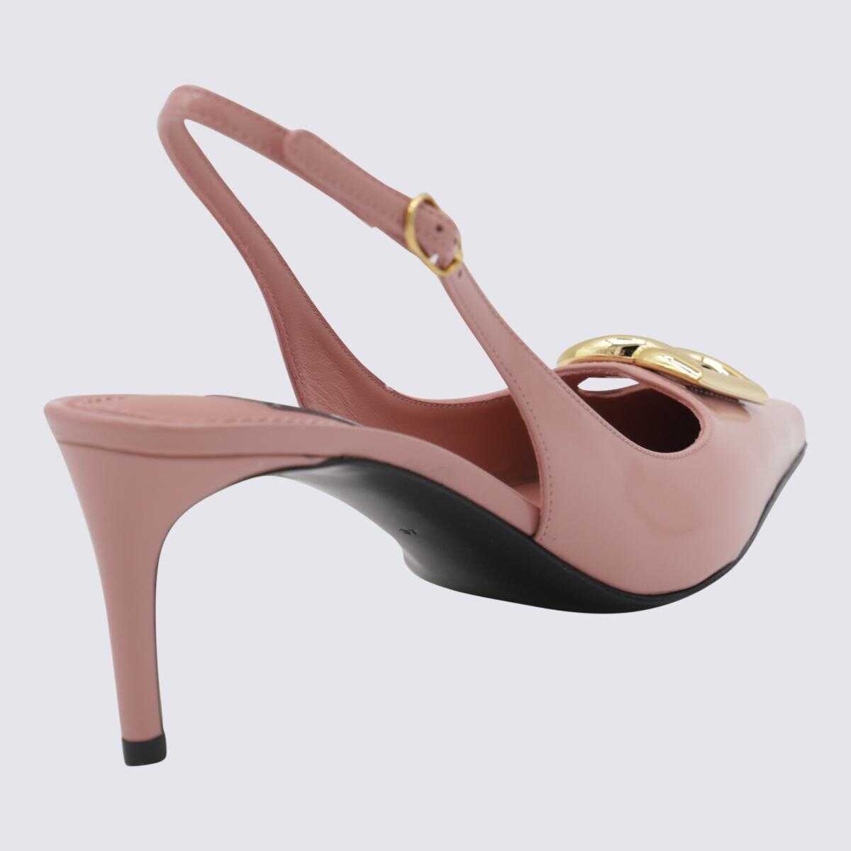 Piink leather pumps from Dolce&Gabbana featuring pointed toe, stiletto heel, open back, buckle fastening and detail.