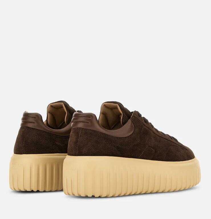 The H-Stripes sneakers feature an extra-light sole with vertical stripes. The upper, with a compact and balanced design, is distinguished by an H that extends along the entire side. The upper edge, with stitching on the heel, has soft padding. This version is made of suede, with a memory foam insole that ensures cushioning