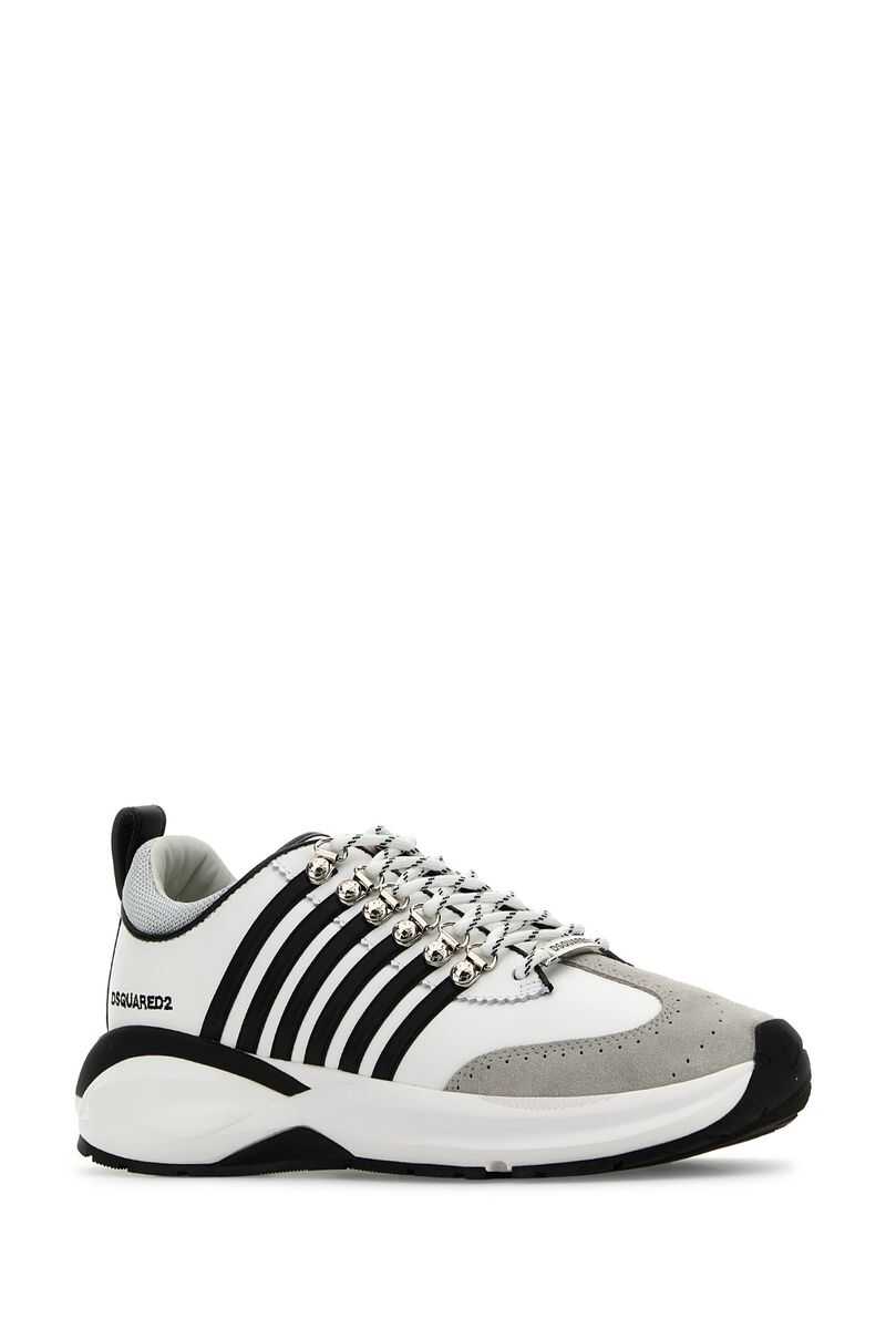 Sneakers Dsquared2 made of White leather. Suede leather inserts. Black leather details. Round toe. "Maple Leaf" logo on the tongue. Lace-up. Contrasting Black "Dsquared2" lettering logo on the side. Padded ankle. Lined interior. Pull tab on the back. Tone-on-tone logo on the back. Rubber sole.