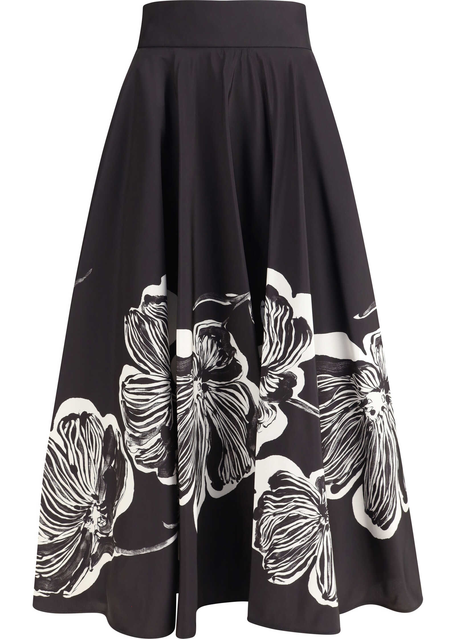 Sara Roka's midi Skirt captivates with its vibrant graphic floral pattern, giving the garment a fresh, contemporary elegance. The full-length design enhances the figure with a wide and feminine silhouette, while the two welt pockets add a practical and refined touch. Completed with a discreet side zipper closure, this skirt combines style and functionality, perfect for adding personality to both everyday and more sophisticated looks.