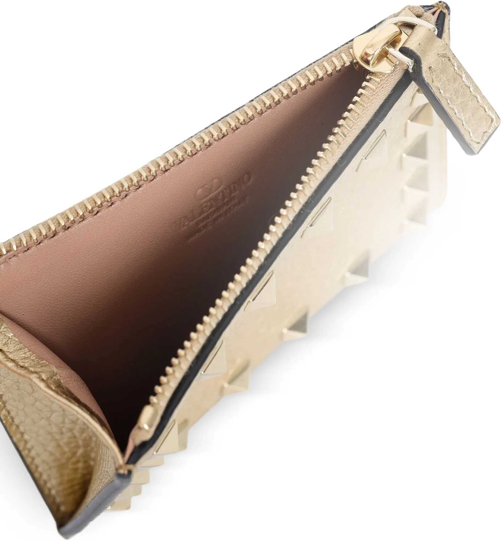 Valentino Garavani's Rockstud Coin Purse is a compact and bold accessory. Crafted with profiles decorated with the iconic studs, it features a zippered welt pocket and four card slots on one side, combining practicality and character in an essential design.