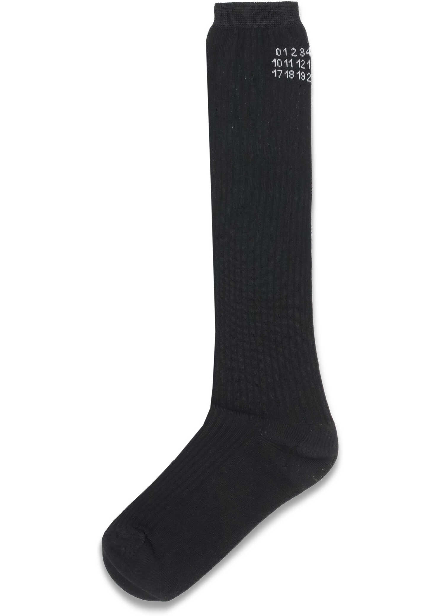 MM6's Socks are made from a stretch viscose blend and feature a contrasting embroidered logo on the top. The ribbed legging adds a sporty touch and ensures a comfortable, snug fit.