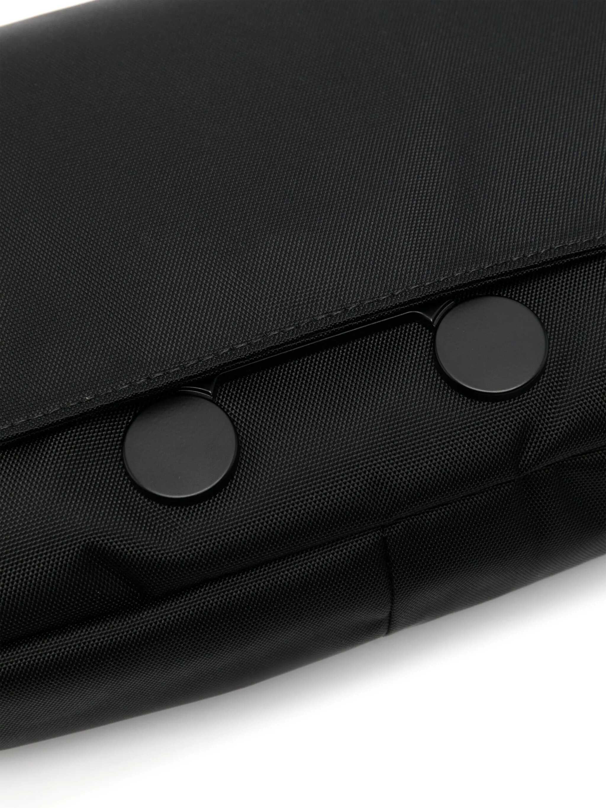 Marni's Cityscape Fanny Pack combines functionality and style with an essential, urban design. Made of waterproof and durable material, it is perfect for everyday use. It features a front flap with satin metal magnetic closure and engraved Marni lettering, while the back features an exterior flat pocket for quick access to essentials. The central zippered compartment provides security, and the adjustable belt ensures a versatile fit. Completing the design is the side maxi label with Marni logo for a distinctive and contemporary touch.
