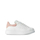 White and pink leather sneakers from McQueen featuring round toe, laces fastening, back logo, suede and leather sole.