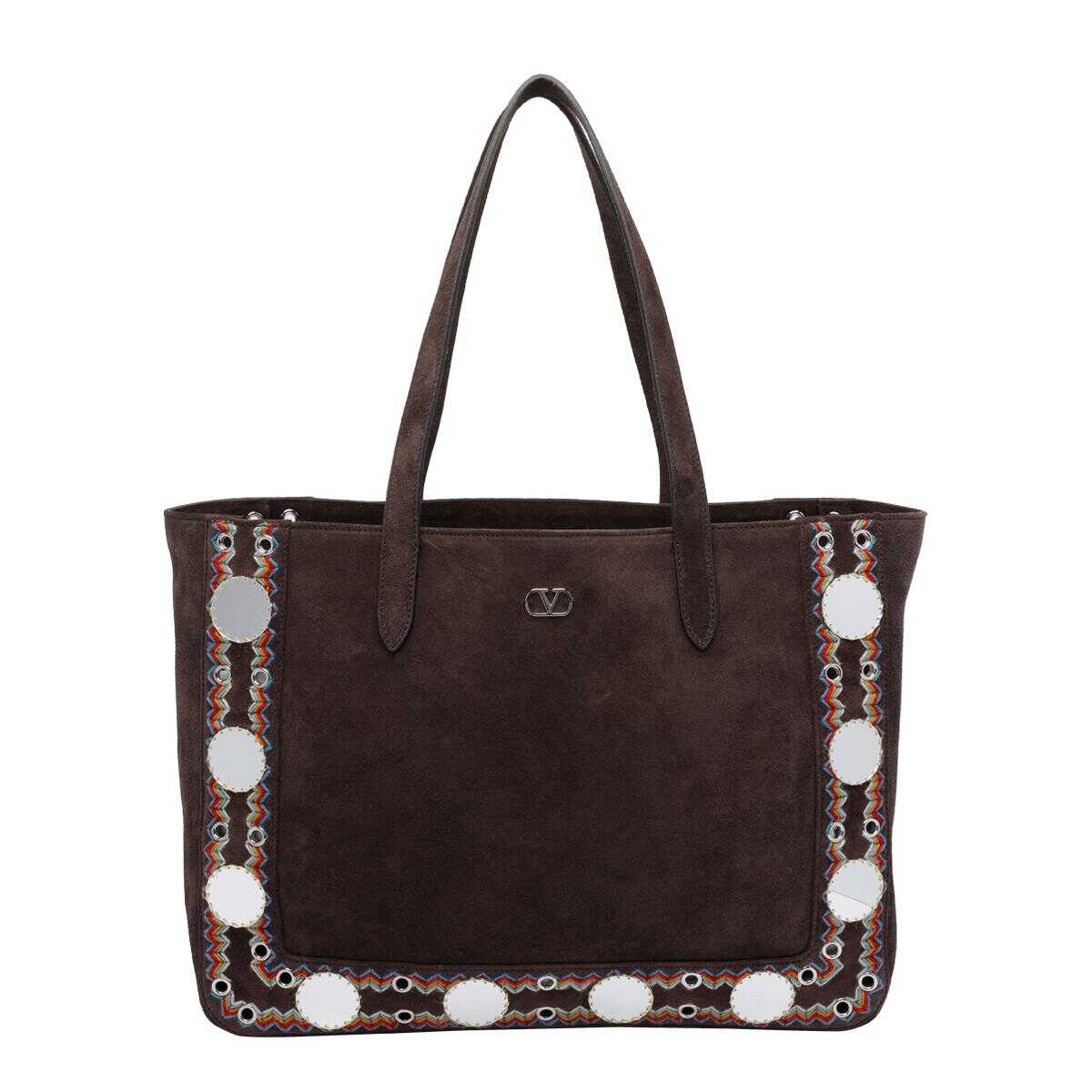 Valentino Garavani Brown Nellcote Tote Bag, 2 Shoulder Straps, Inner Removable Zippedpochette, Frontal Mini Logo, Suede Model, 29,5x44x12 cm