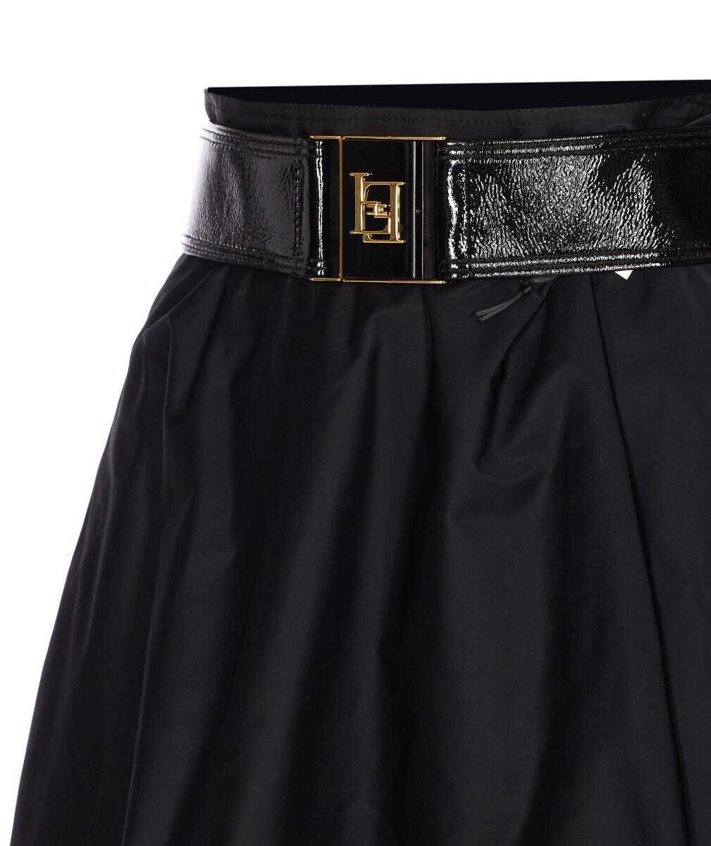 Elisabetta Franchi Black Midi Skirt, Zip And Hook Closure On The Back, Lateral Pockets, Wide Leg, Belt On Waist, EU SIZE (IT)