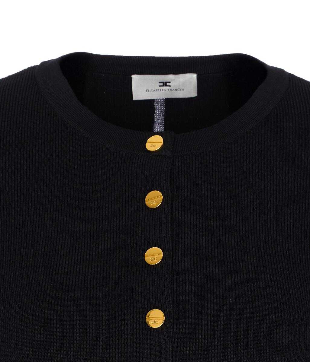 Elisabetta Franchi Black Cardigan With Buttons Closure, Long Sleeves, Crewneck, Buttons On Cuffs, EU SIZE (IT)