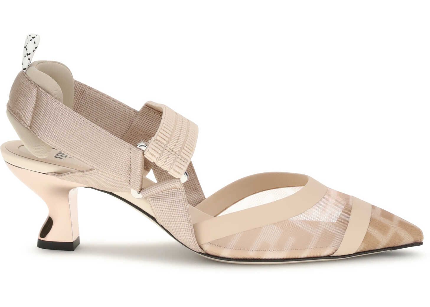 Fendi's Colibrì mesh Pumps combine modernity and femininity in a sophisticated silhouette. The transparent mesh toe with almond design lends lightness and a contemporary touch, while the elastic sling-back strap at the heel ensures a stable and comfortable fit. The leather kitten heel adds elegance without sacrificing practicality, complemented by the logo-embossed insole, the house's iconic detail.