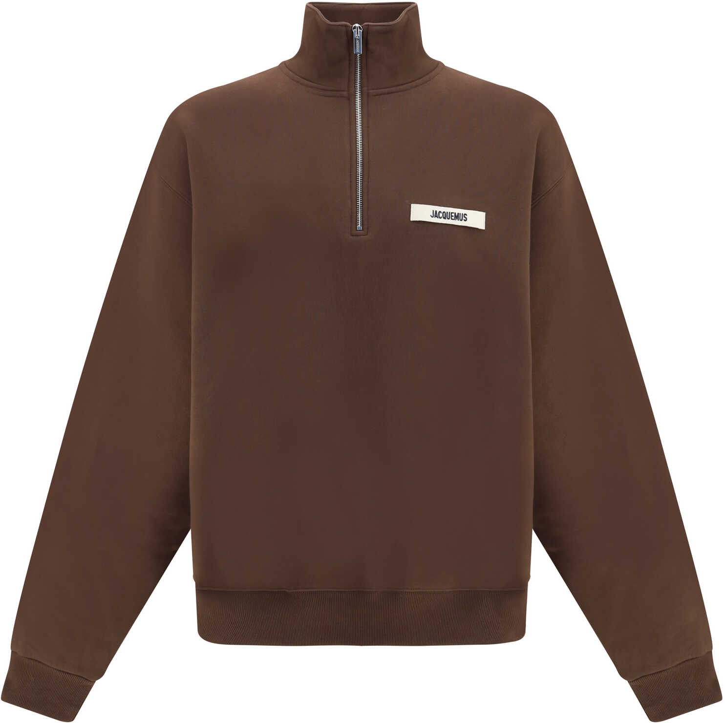 The cotton Le Camionneur Sweatshirt by Jacquemus features a plush interior for optimal comfort. The brand's iconic monogram patch applied to the front adds a distinctive touch, while the ribbed cuffs and hem ensure a comfortable, finished fit. The high collar and zipper closure on the front complete the design, giving it a modern and practical look, perfect for a casual yet sophisticated look.