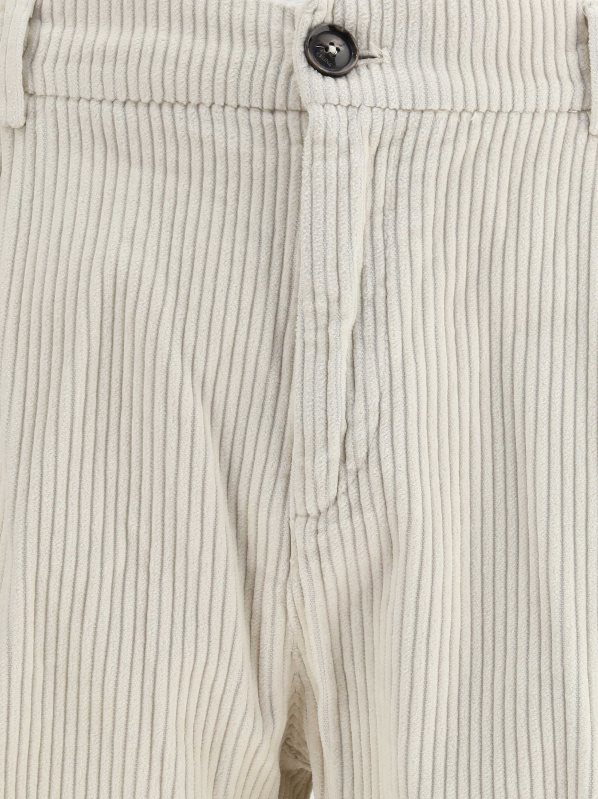 Cruna's Corduroy Pants combine casual elegance and comfort. Featuring a zip-and-button front closure, they have belt loops at the waist and a figure-flattering slim cut. Perfect for a refined yet versatile look, ideal for the cooler season.