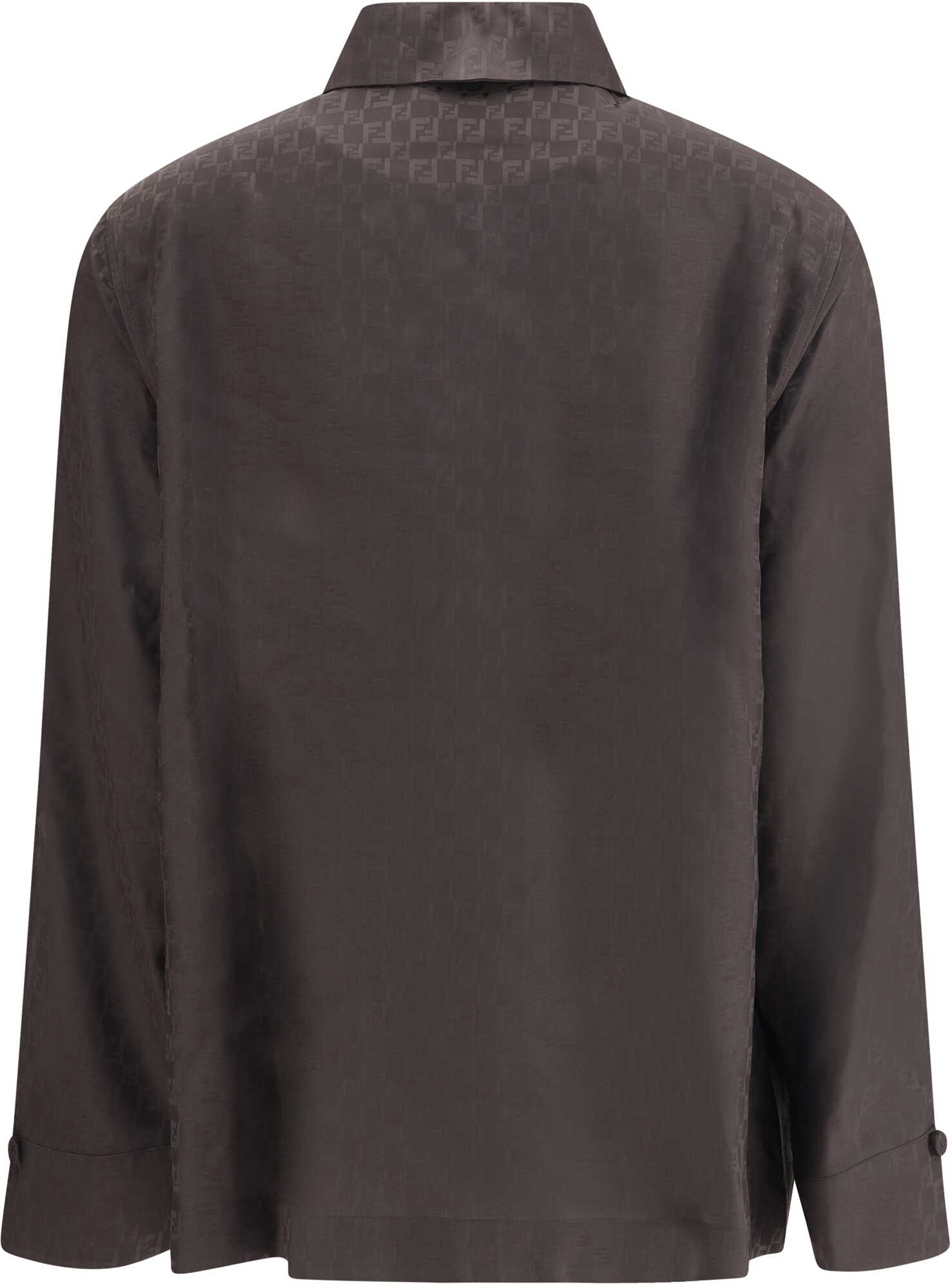 Fendi's Silk jacquard Shirt is a sophisticated garment that expresses the distinctive elegance of the fashion house. Made of fine jacquard-textured silk, it is embellished with the FF motif embroidered across the surface for a refined and iconic effect. It features a short point collar, a wrap-around closure with concealed buttons and buttoned corner cuffs, completing the design with a tailored touch. Ideal for formal looks or for adding a contemporary luxury accent to everyday outfits.