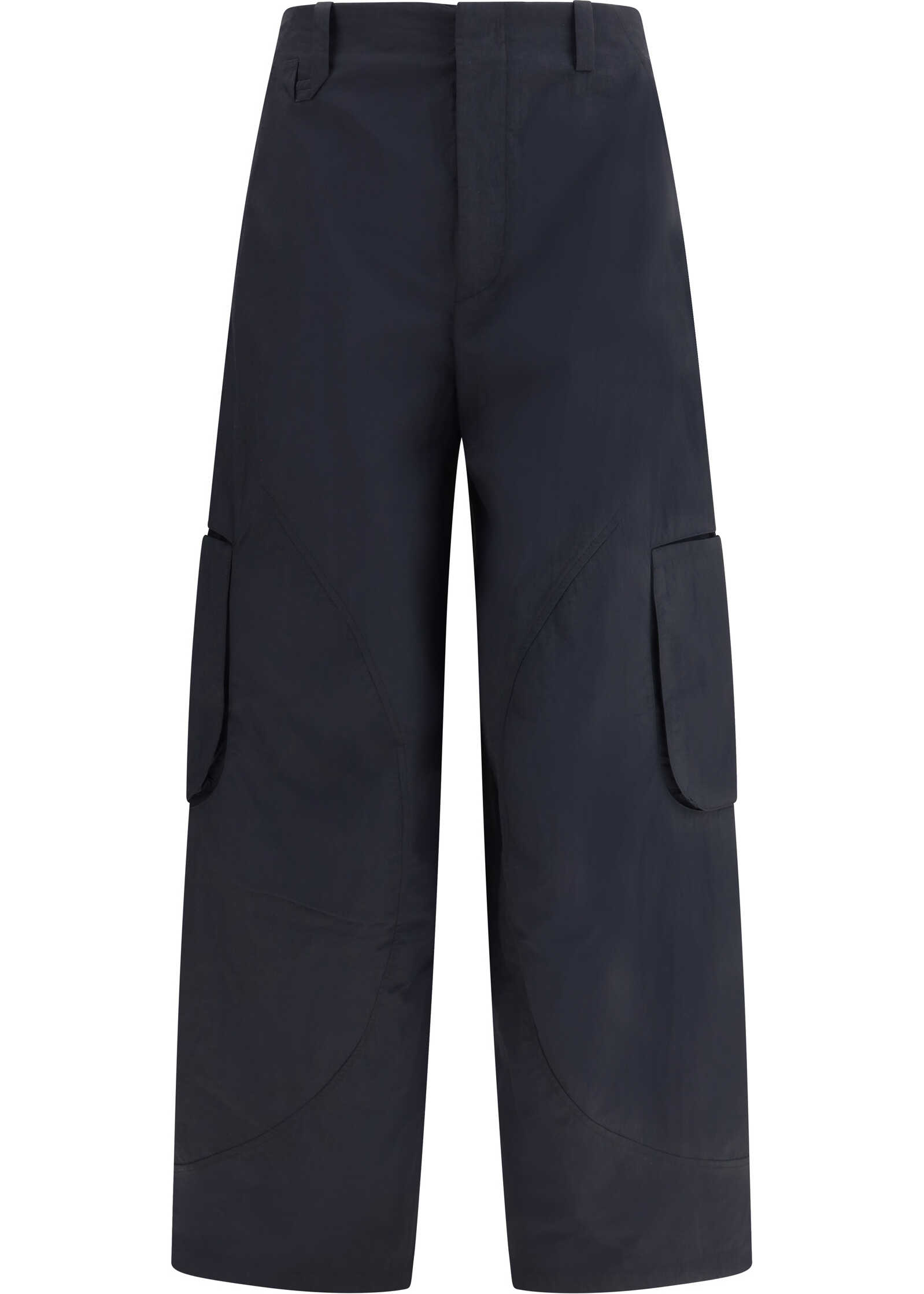 The Le Cargo Molino Pants by Jacquemus reinterpret the utility aesthetic with a refined, contemporary style. Made with a six-pocket construction, they include angled side pockets and large patch pockets on the legs, combining functionality and design. The waistband features a concealed button closure and invisible zipper, while the belt loops are embellished with the brand's signature discreet "J" detail. The relaxed silhouette gives a casual yet curated attitude, perfect for urban looks with a strong character.