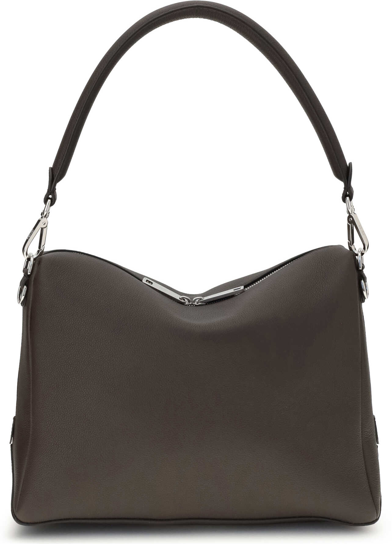 The Lui Large Shoulder Bag by Fendi is an elegant and versatile accessory, designed for a contemporary and refined style. It features a soft construction and carefully crafted details, such as the long double-slider zipper and FF metal corner accents. The spacious fabric-lined interior includes a practical flat pocket. Palladium-finish metal hardware adds a sophisticated touch. Thanks to the removable handle and the adjustable, detachable shoulder strap, it can be carried by hand, worn on the shoulder, or cross-body, effortlessly adapting to different occasions.