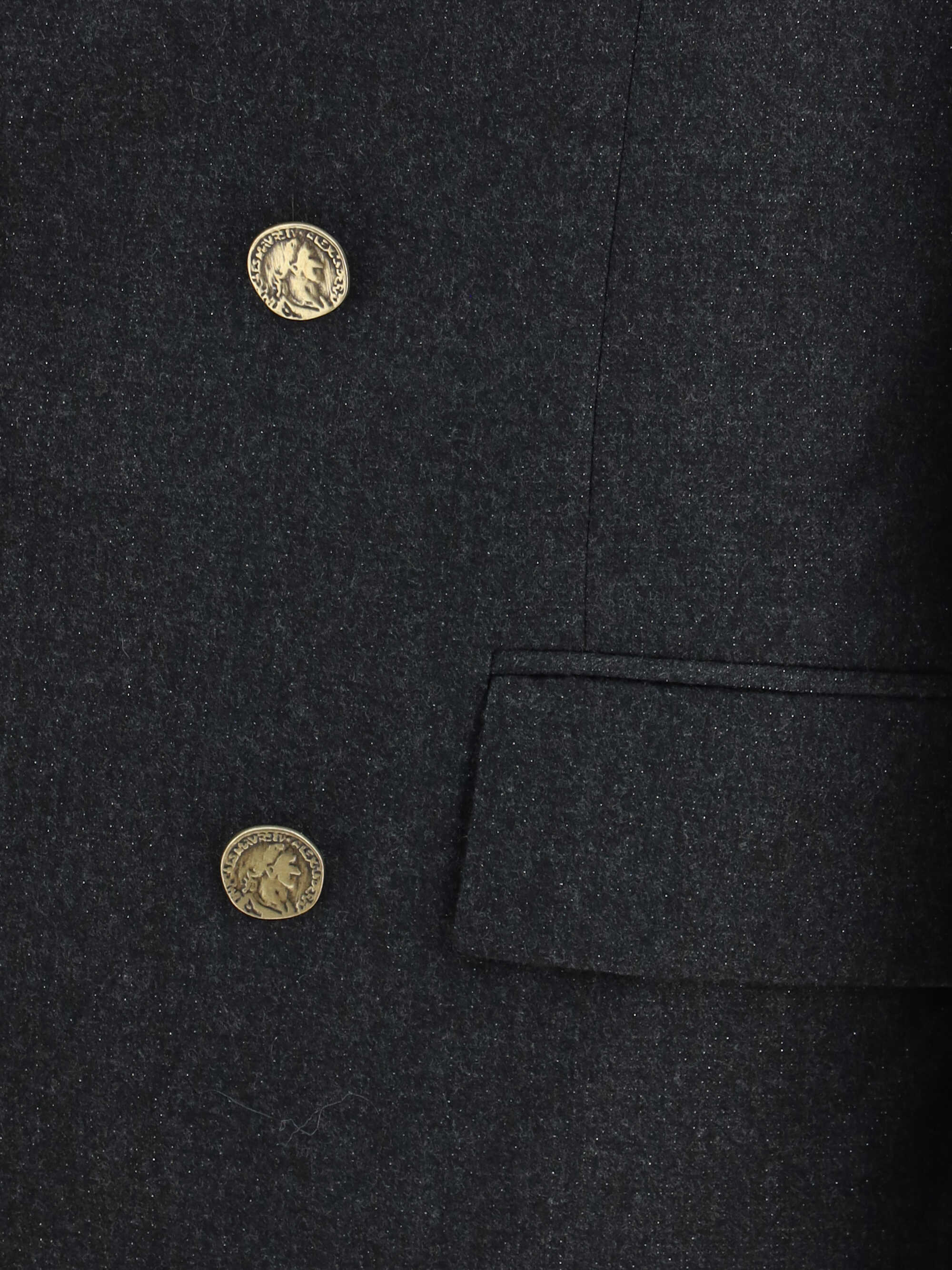 Vivienne Westwood's Double-breasted Blazer embodies the unconventional elegance typical of the Maison, with a structured design full of character. Featuring peaked lapels and a double-breasted front button closure, it is complemented by two flap welt pockets and two back slits that lend movement to the silhouette. The metallic yarn finish adds a bold and sophisticated touch, perfect for those who like to stand out in style.