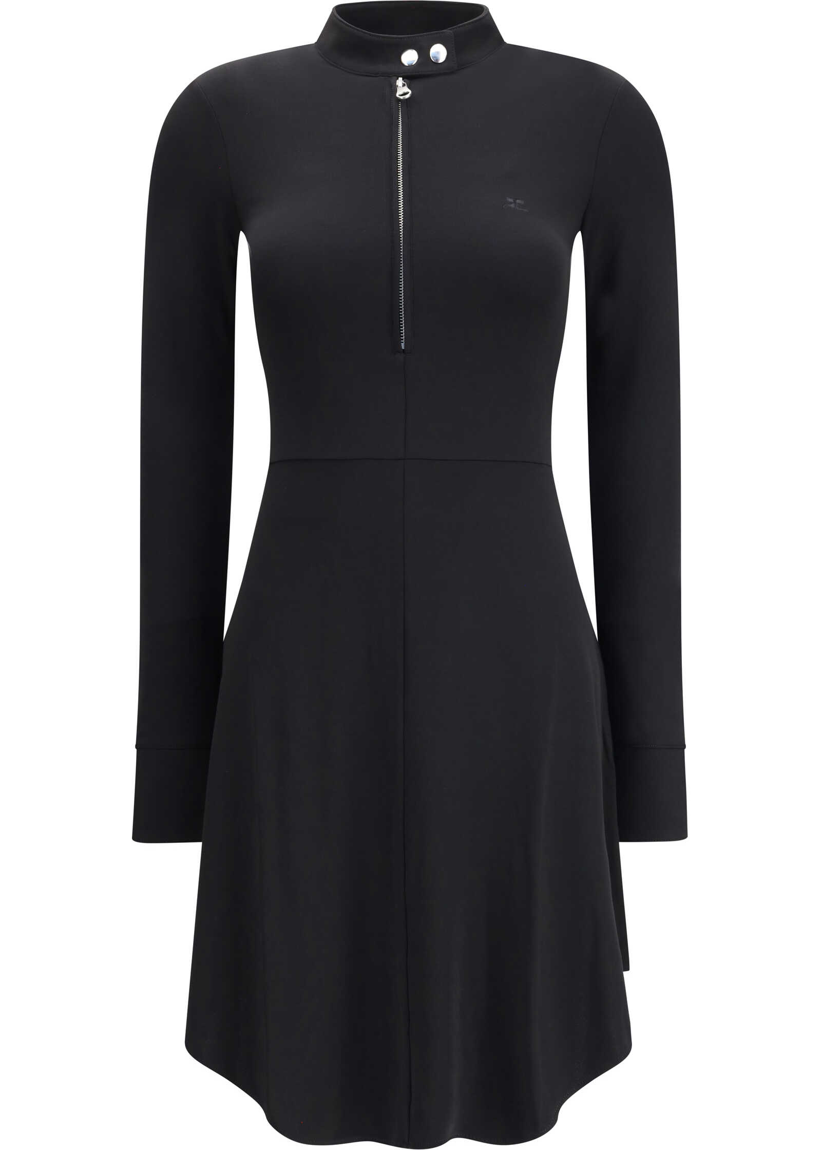 Courrèges' zippered jersey biker Dress is the perfect meeting of contemporary attitude and avant-garde spirit. Made of technical jersey, it envelops the silhouette with a bold yet comfortable fit. The long-sleeved design recalls the biker aesthetic with iconic details such as an adjustable high collar and a center front zipper that allows you to modulate the opening at will. The brand's essential signature "AC" logo stands out on the chest, adding a graphic and recognizable touch. A suit with an urban soul, designed for those who love a bold and sophisticated look.
