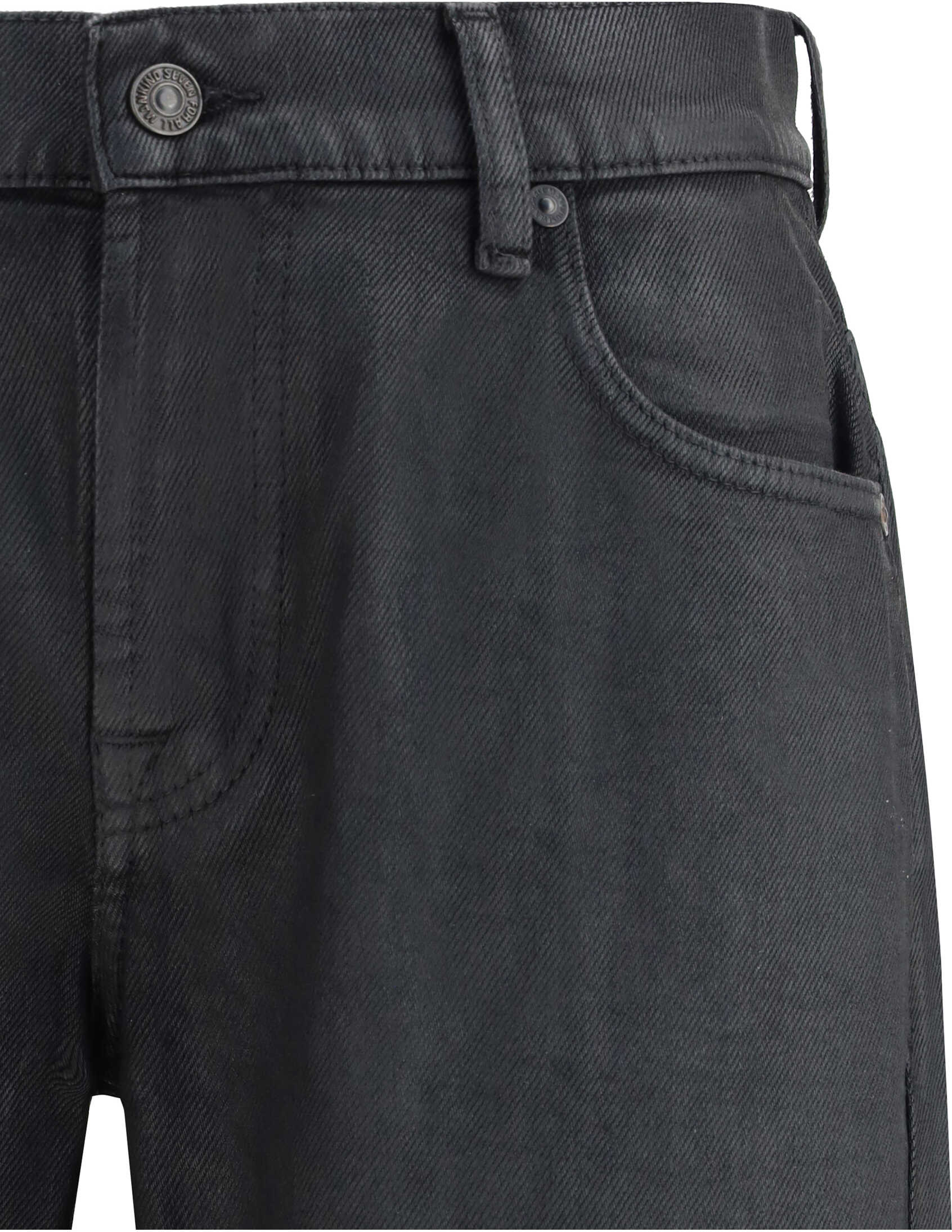 Flare Jeans by 7For, with a medium waist and belt loops at the waist. Zipper and button front closure. Featuring a wet-effect finish for a contemporary and distinctive look.