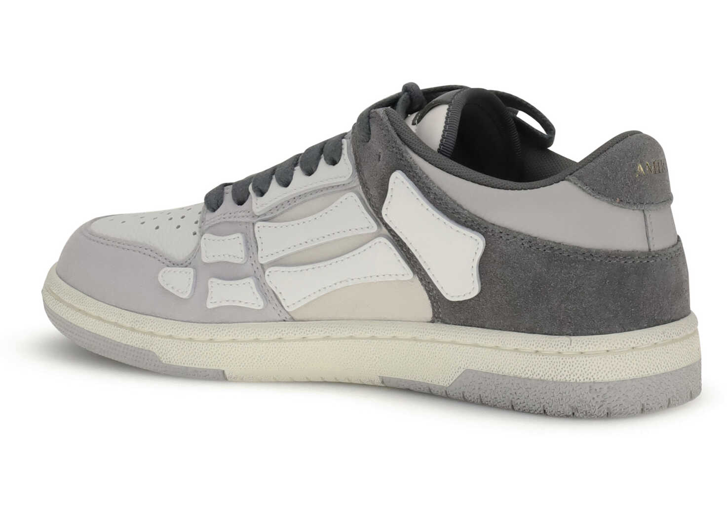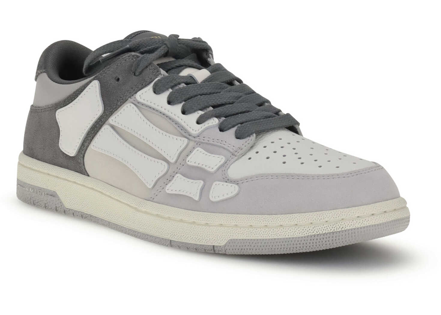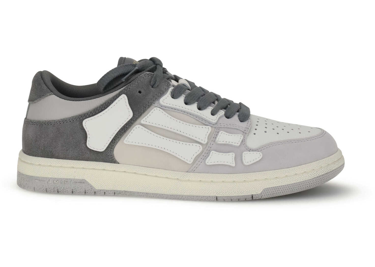 Amiri's Distressed Skel Top Low Sneakers stand out for their bold and sophisticated design. Made on a two-tone rubber sole with a patina effect, they feature a grained leather and suede upper, enriched by the iconic bone-shaped appliqués, the brand's unmistakable symbol. A bold style that blends craftsmanship and streetwear identity.