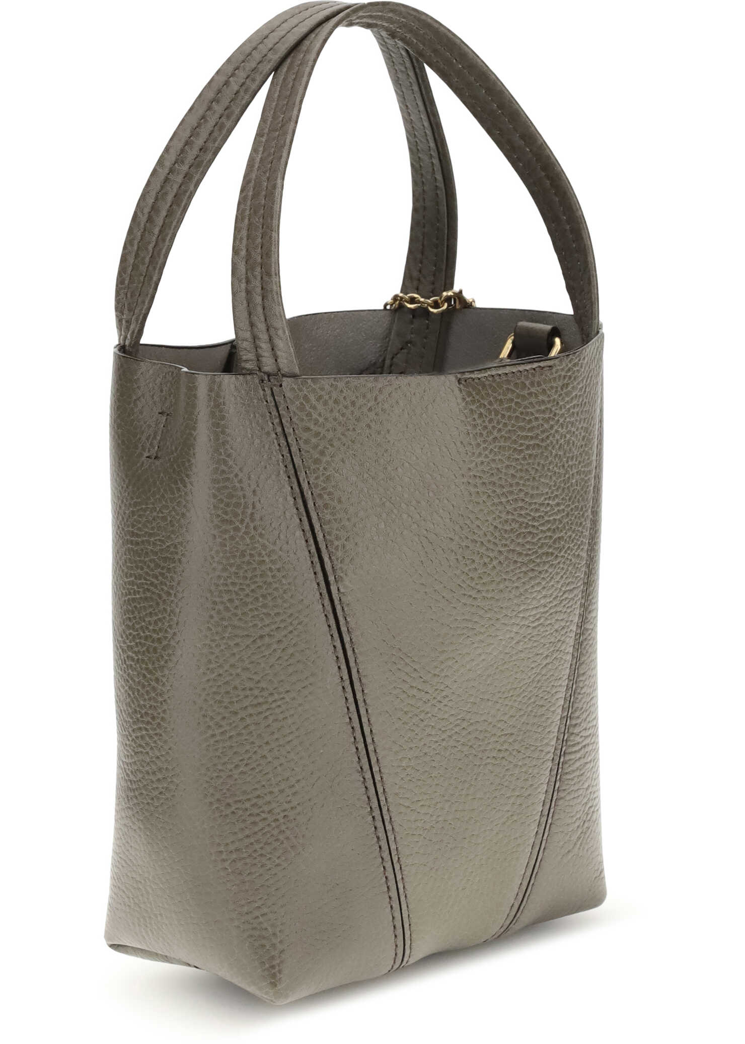 The Spin Shoulder Bag by Chloé, crafted by shiny grained leather, features an elegant design with two flat top handles and an adjustable shoulder strap. The closure is secured by a magnetic button, while the detail of the hanging chain with Chloé medals and the emblematic Horse adds a distinctive touch. The iconic monogram press-stamped on the front stands out, and inside there is a single compartment, for a minimalist and functional aesthetic.