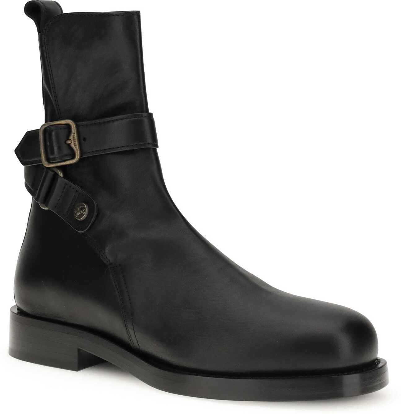 Burberry's Buckle Ankle Boots combine contemporary style and functionality. Featuring a rounded toe and an above-ankle height, they have a handy pull-on back for easy on-and-off wear. The logo buckle on the ankle adds a distinctive and iconic detail.