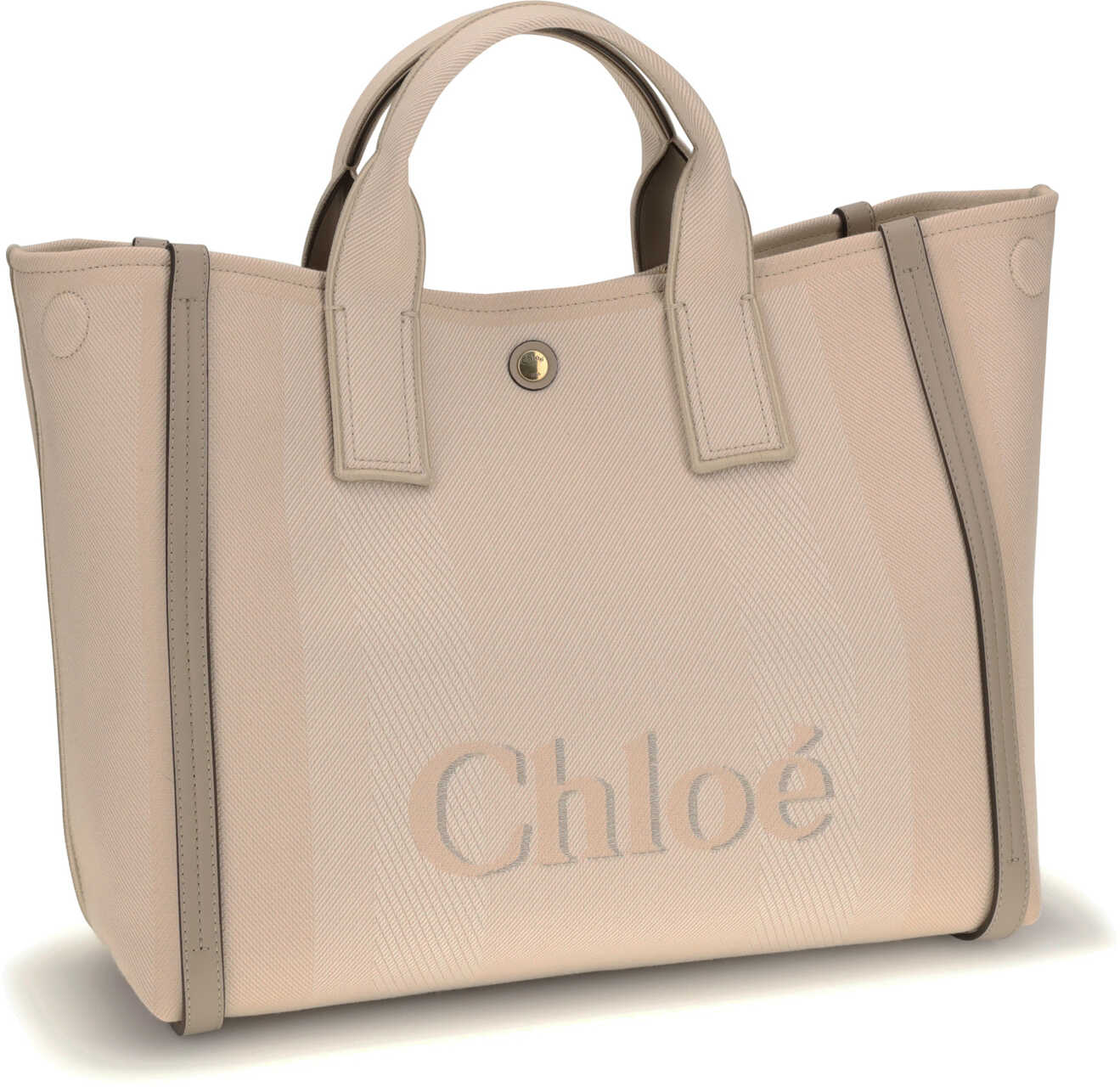 Chloé's Carry Handbag is a refined and versatile accessory made of cotton with contrasting leather details that accentuate its elegance. The snap top closure provides practicality, while the double flat handles and leather extension on the side panels add a sophisticated touch. The brand's iconic monogram is visible on the front and back, creating a distinctive appeal. The removable and adjustable leather shoulder strap also allows it to be carried on the shoulder, increasing versatility. Inside, a welt pocket helps keep smaller items tidy, while the brand's signature on the side panels completes the look with a classy detail.