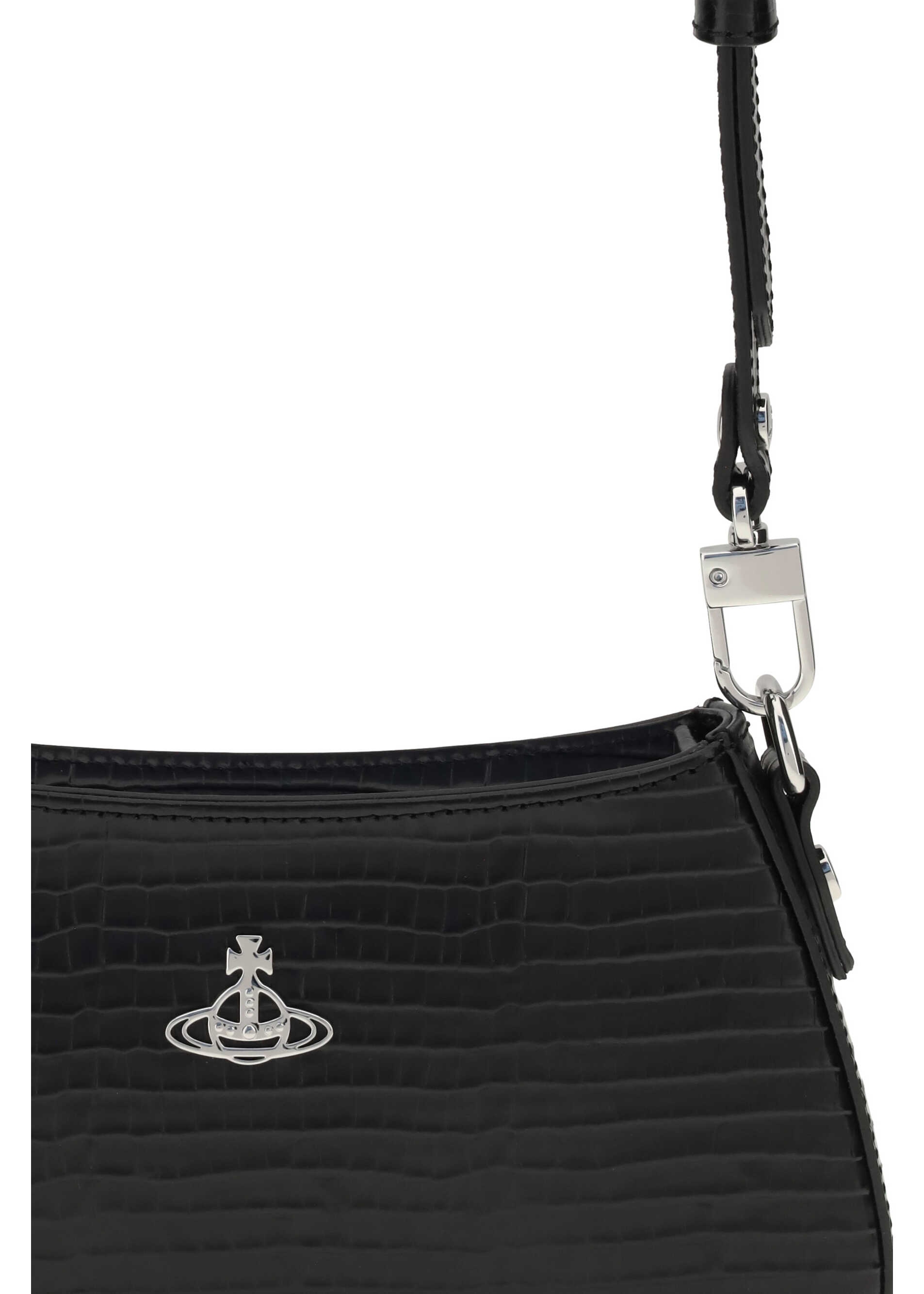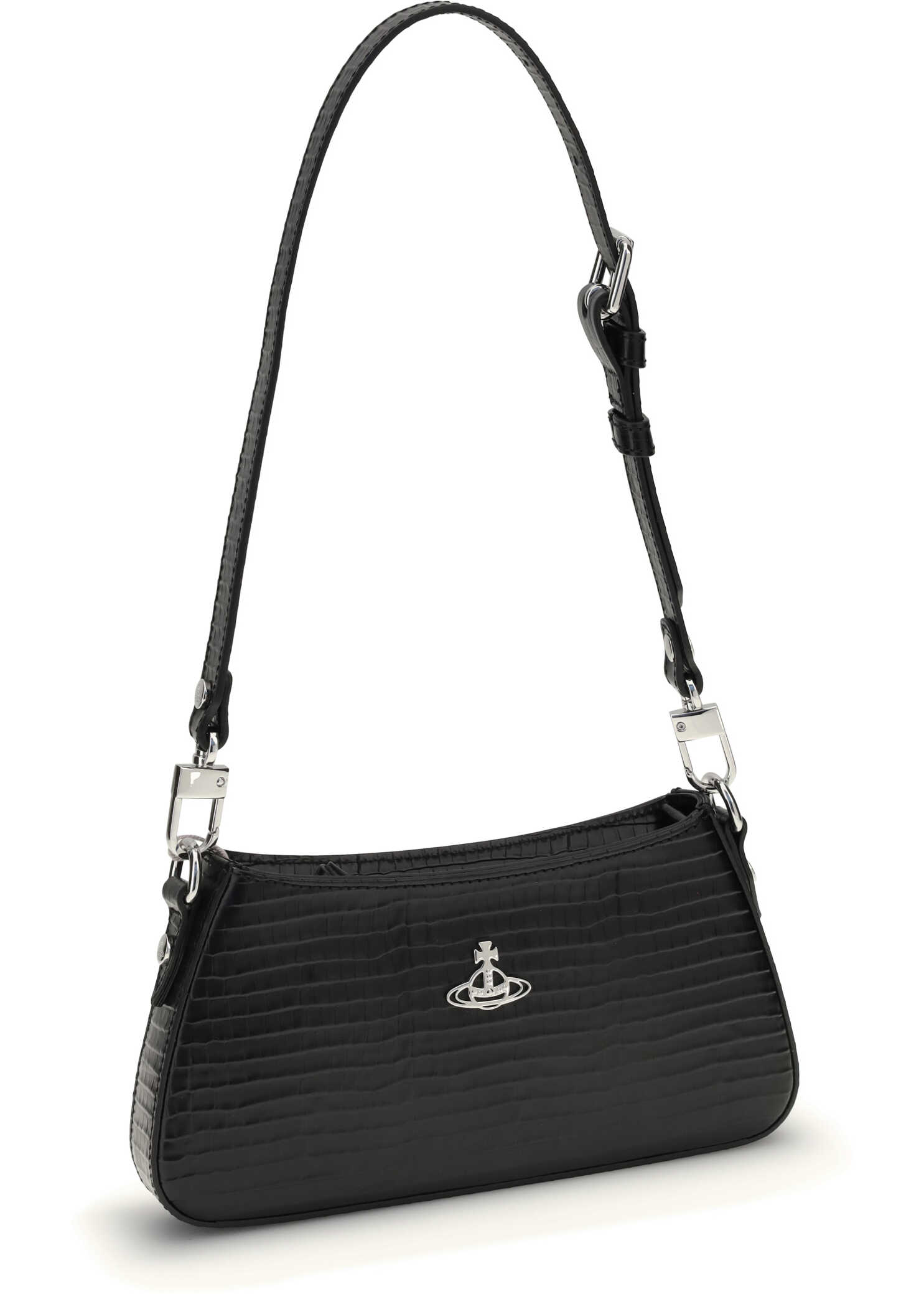 Vivienne Westwood's Tasha Shoulder Bag features a streamlined silhouette and compact size perfect for smartphones and essentials. It features a snap-button closure and a zippered top closure, as well as an adjustable and removable shoulder strap for added versatility. A 'Line Orb' motif, gently curved edges and silver-tone hardware enhance the design, complemented by moiré lining.
