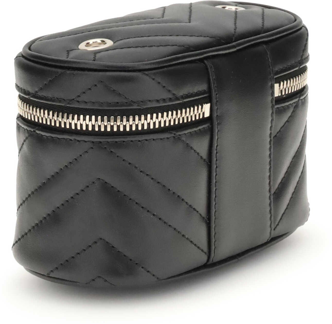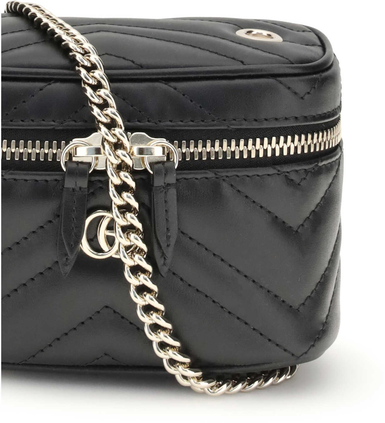 Gucci's nano GG Marmont Beauty Case is a compact and precious accessory, perfect for storing essentials to carry with you in style. Featuring the iconic Double G and light gold-colored metal hardware, it is enhanced by a chain strap that also allows it to be used as a mini bag. The interior is lined in Gucci's signature red taffeta Ancora, while the zipper closure ensures practicality and security. A small item but full of personality, an expression of the maison's contemporary elegance.
