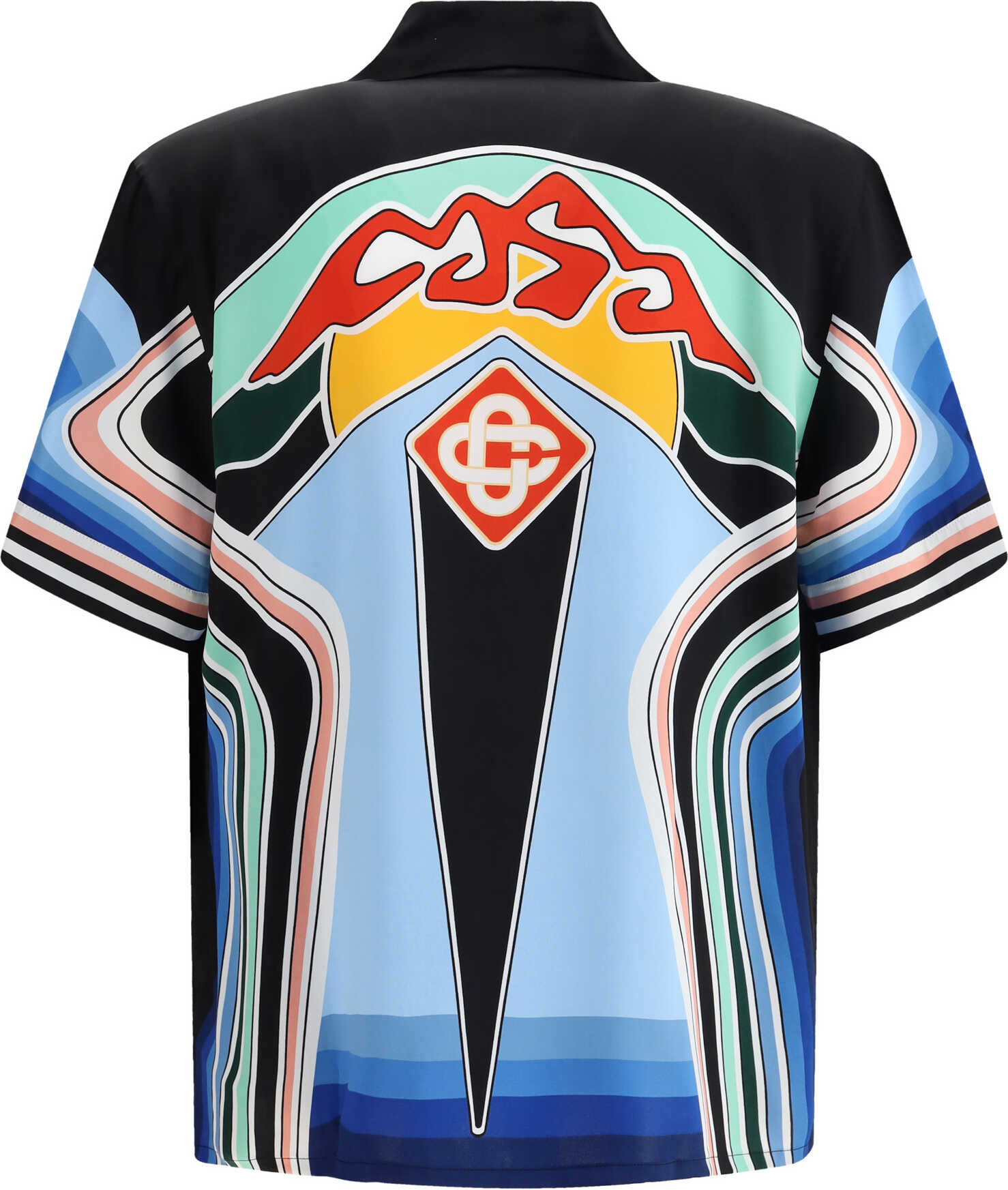 Casablanca's Graphic Mountain short-sleeved silk Shirt is an all-over print pattern that features the house's iconic artwork. The digital design highlights the mountain logo, featuring different lines and gradients that create a strong branding effect. Made of satin silk, the shirt is completed with a concealed button closure, corozo buttons with the CC woven logo, and the house's signature diamond logo.