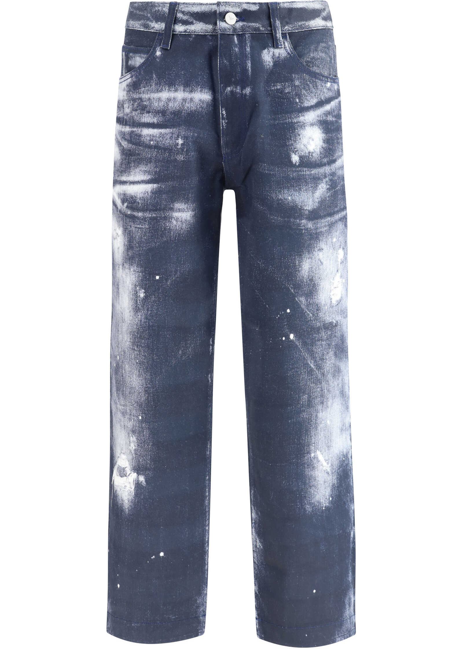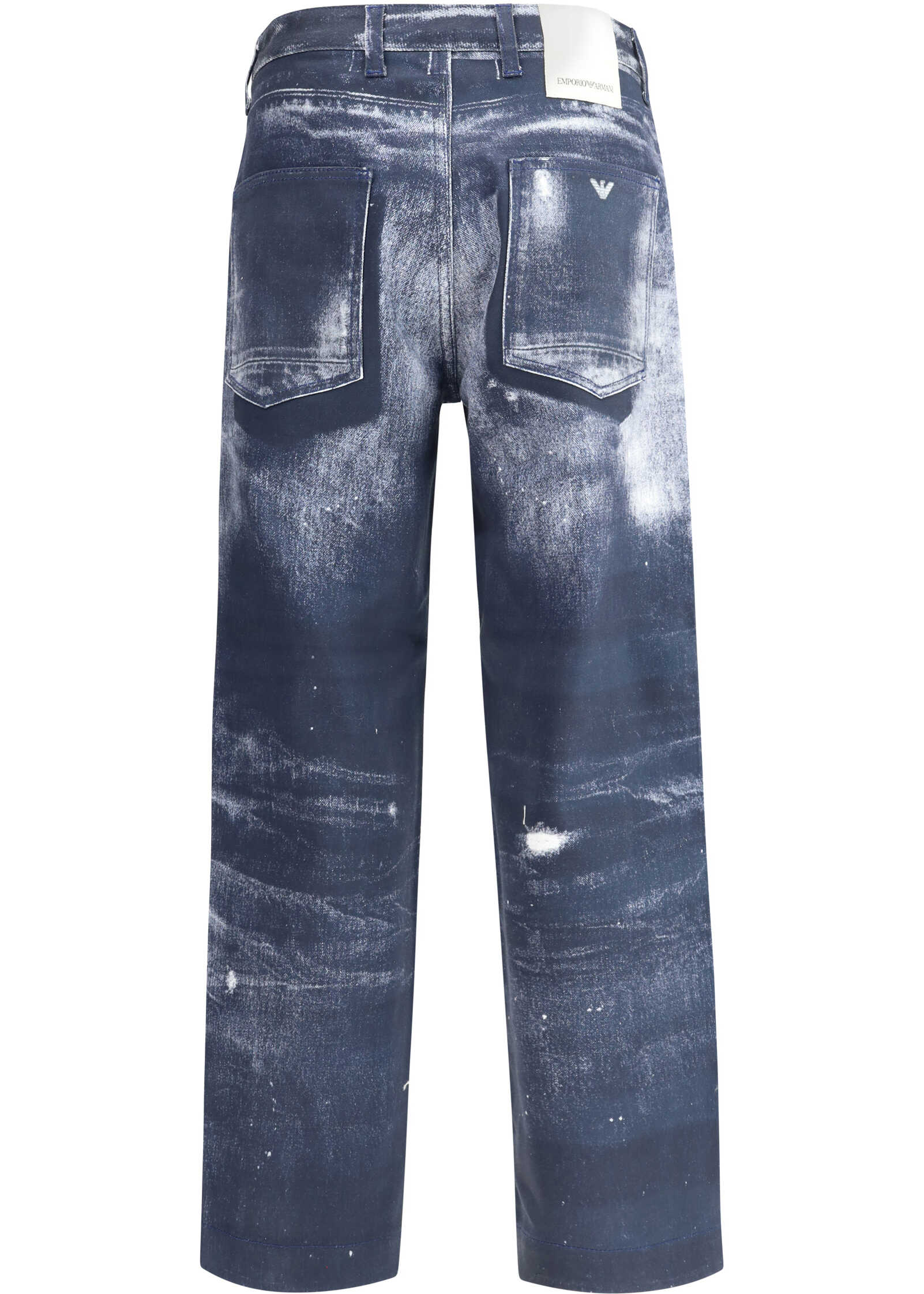 Emporio Armani's denim print Pants reinterpret a wardrobe classic with a contemporary twist. Featuring a straight silhouette and a traditional five-pocket style, they feature a front zipper and button closure, as well as practical belt loops at the waist. The denim-effect print gives the garment a modern and versatile look, perfect for adding character to everyday outfits without sacrificing comfort.