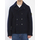 Outerwear in felted RWS wool in navy blue color. Features notch lapels, six-button double-breasted closure, collar with buttons for additional fastening, two welt pockets on the front, and logo patch on the sleeve. Regular fit.