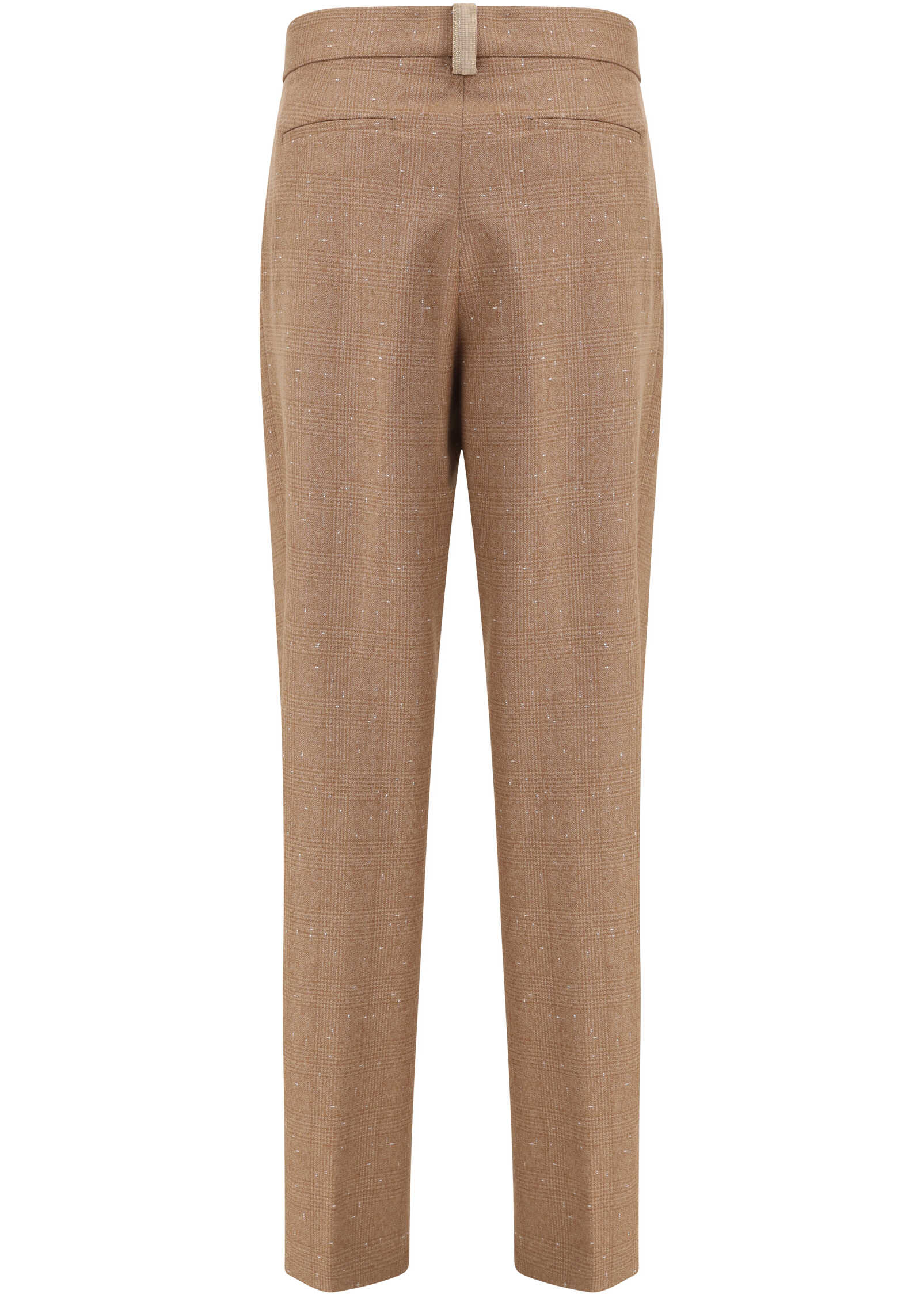 Fabiana Filippi's Prince de Galles Pants express classic elegance revisited with modern and sophisticated details. Made of a fine Prince of Wales slub fabric with a silky smooth surface, they combine comfort and sophistication in a garment designed to stand out. The front darts enhance the silhouette, while the diamond thread loop detail adds a bright and distinctive note, typical of Fabiana Filippi style. Completing the design are the high waist, straight leg, zip-and-hook closure, and belt loops at the waist, perfect for pairing with thin belts or sophisticated accessories.