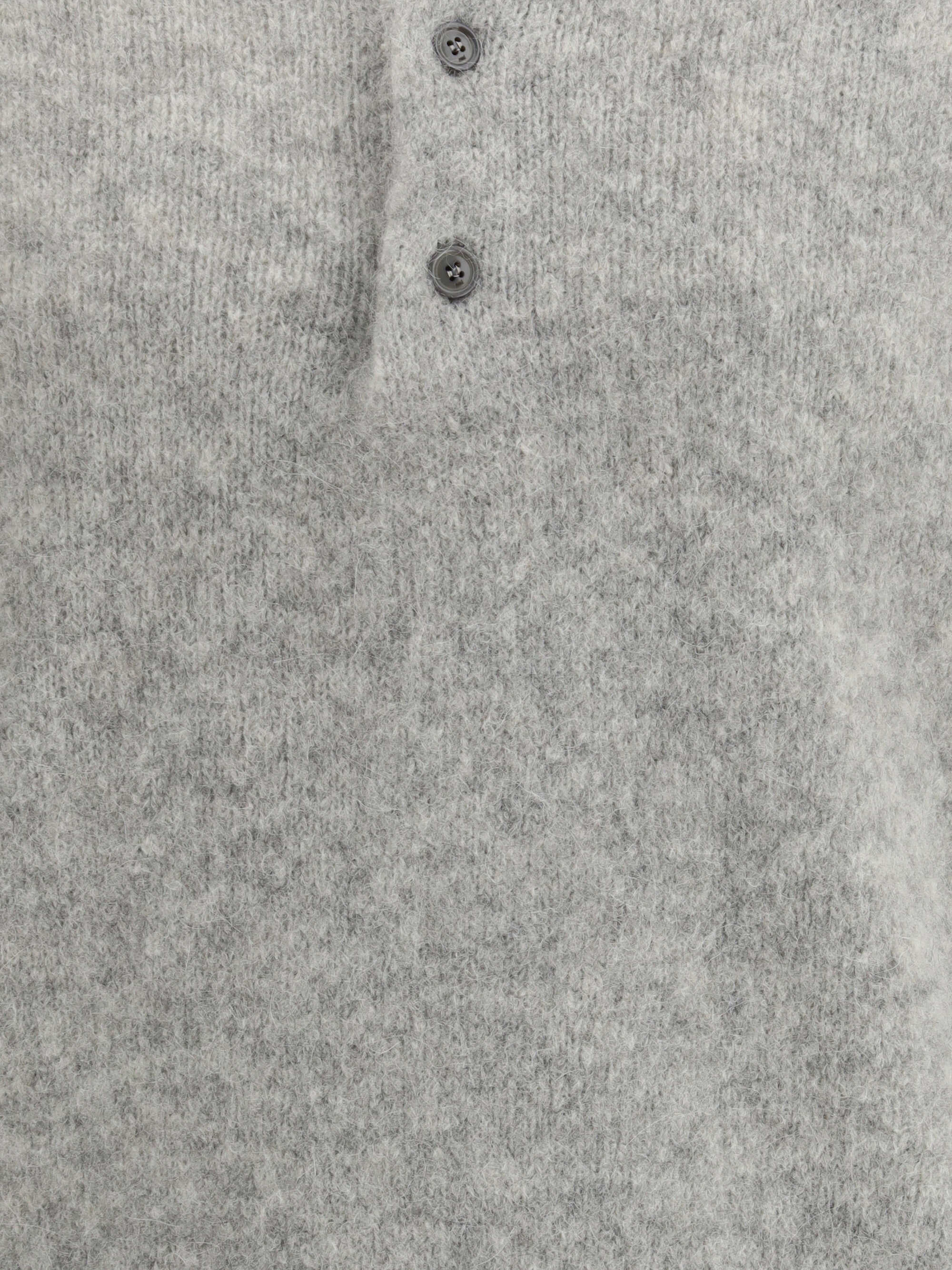 The wool Polo Sweater by Ami Paris combines the elegance of a classic cut with the quality of fine yarns. Featuring a traditional collar and a three-button front closure, it has ribbed cuffs and hem that ensure a comfortable and defined fit. The embroidered logo on the front adds an understated yet distinctive touch, a signature of the brand's understated and refined aesthetic. Perfect for versatile outfits, it is ideal in both casual and more formal settings for a clean yet refined style.