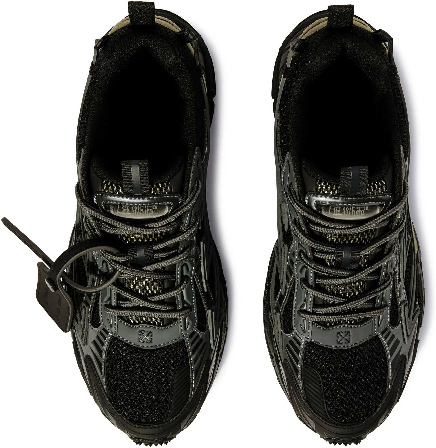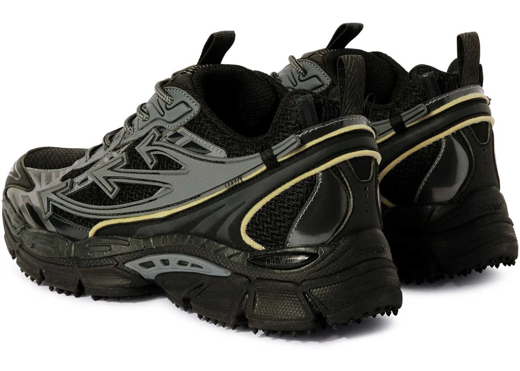 The Off-White Be Right Back Sneakers combine mesh and rubberized leather for a modern and resistant look. The iconic zip tie on the front and the monogram printed on the tongue and insole recall the distinctive design of the brand. The closure is with laces, for an adjustable fit. The shoe has a tapered silhouette, perfect for a bold and contemporary streetwear style.