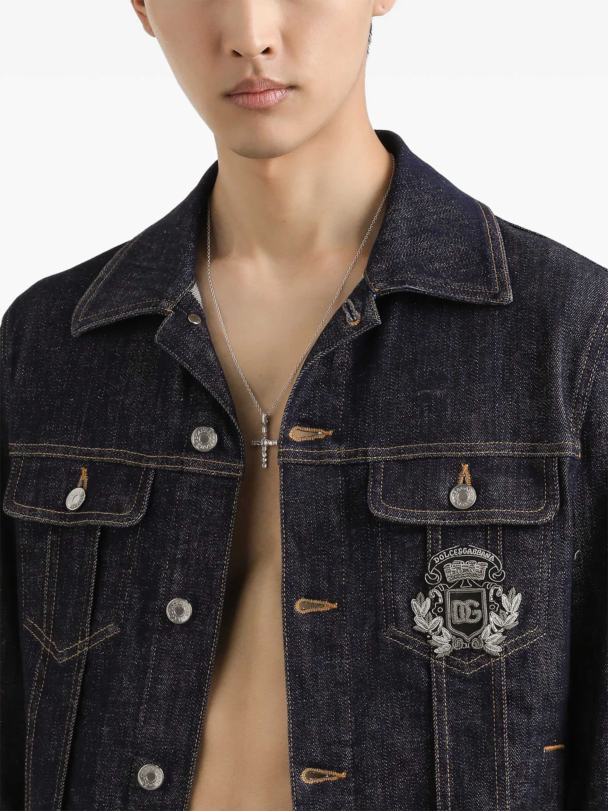 Cotton denim jacket with logo patch with front heraldic coat of arms, button closure, pockets, long cuffed sleeves