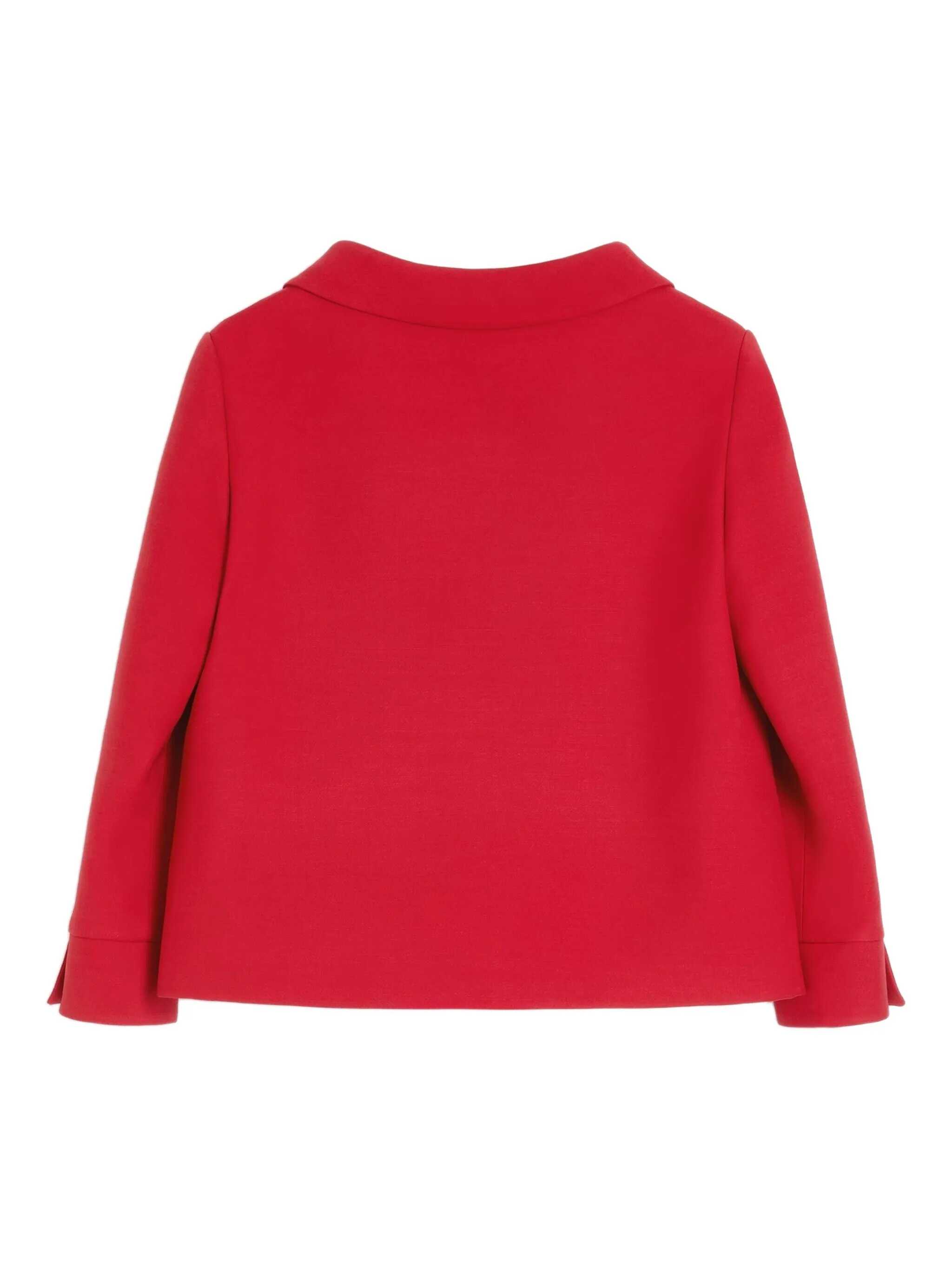 Wool and silk blend Crepe Couture blazer, VLogo diagonal stripe crepe de chine lining, wide neckline collar, antiqued metal heart detail with all-over rhinestone application, front snap button closure, pockets, 3/4 sleeves with slit on the sleeve hem