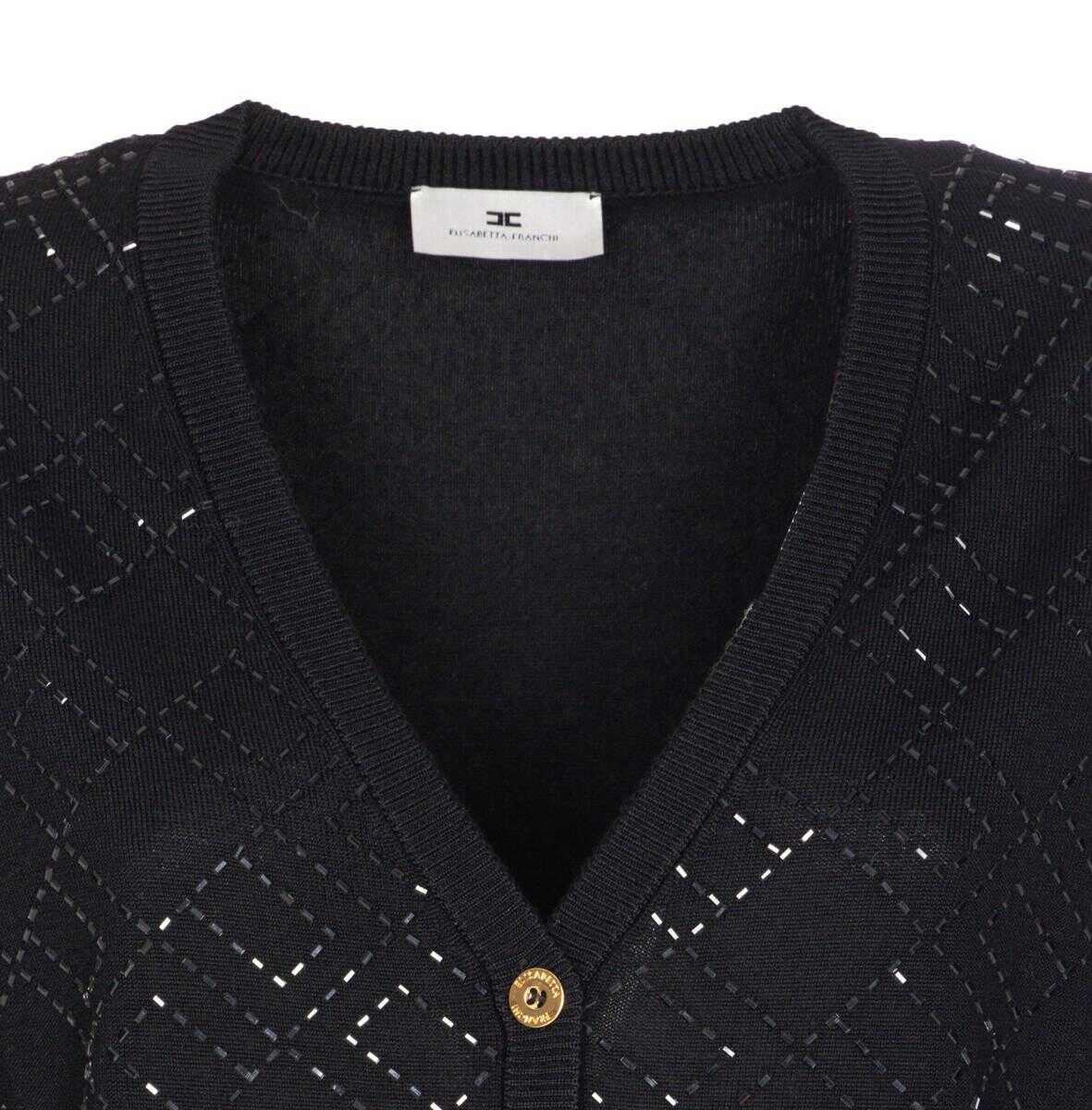 Elisabetta Franchi Black Cardigan With Buttons Closure, V-Neck, Long Sleeves, EU SIZE (IT)
