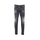 Dsquared2 slim-fit jeans crafted from black stretch cotton denim with a distressed effect. Characterized by a metal button closure, belt loops, classic five-pocket design, and logo patch on the back.