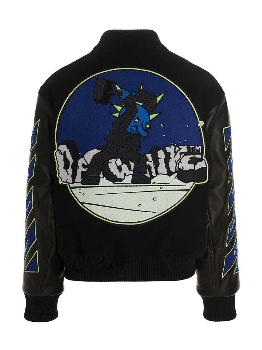 Vars Hammer' cloth bomber jacket with all-over embroidery, long leather sleeves with knitted cuffs, zip closure, lined and padded interior, pockets