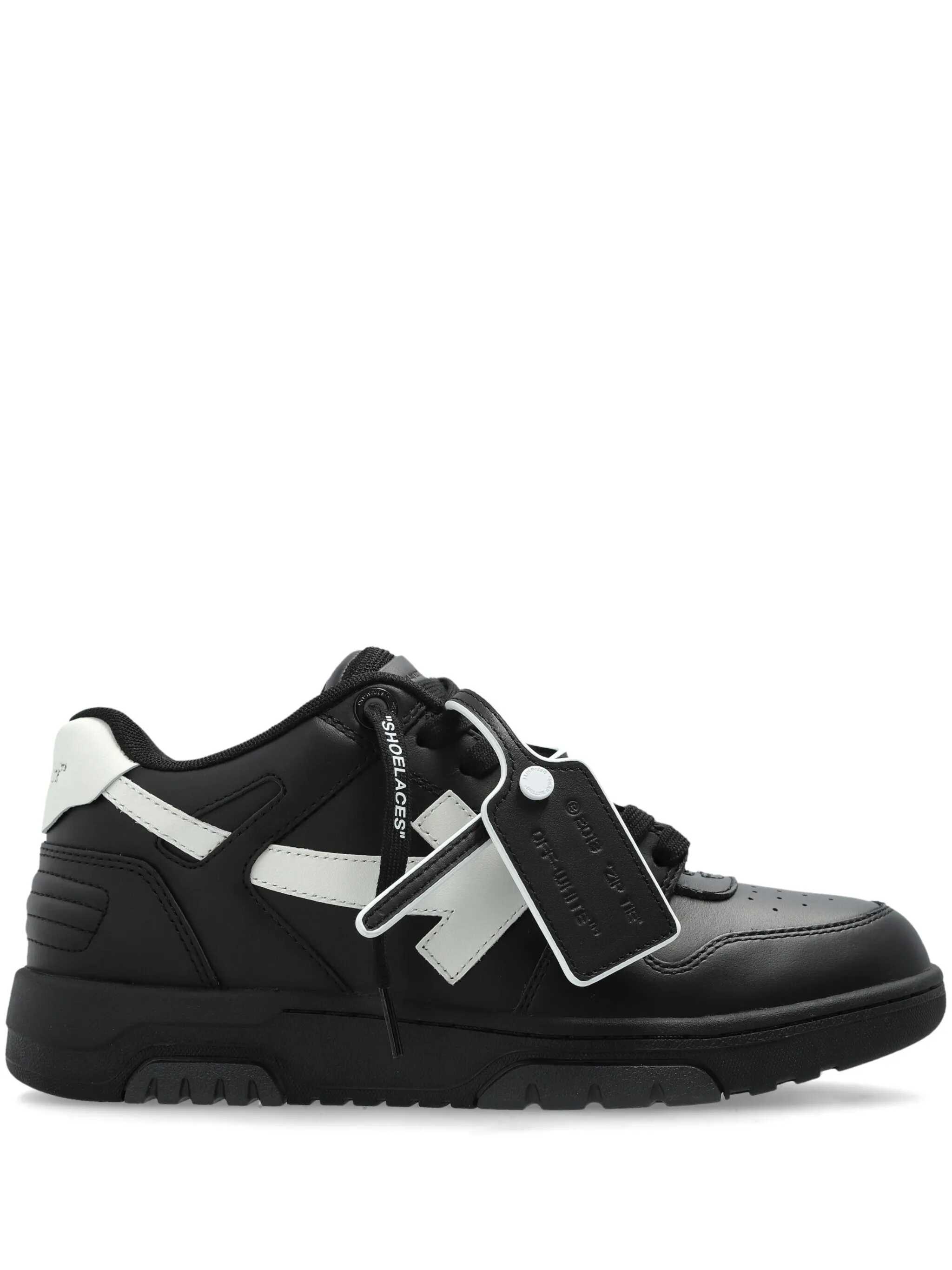 'Out Of Office' leather sneakers with logo tag, contrast side 'Arrow' heel and logo, laces and rubber sole