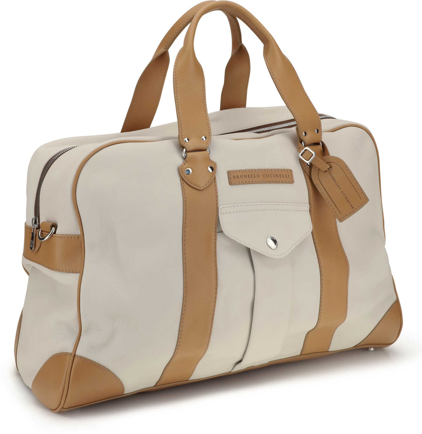 Brunello Cucinelli's Street Travel Bag combines functionality and sophistication. Featuring a zipper closure, double handles and an adjustable, removable shoulder strap, it offers practicality in any situation. Includes an exterior pocket with snap button, water-repellent fabric lining and removable name tag. All metal details are Nickel-free, ensuring quality and comfort.