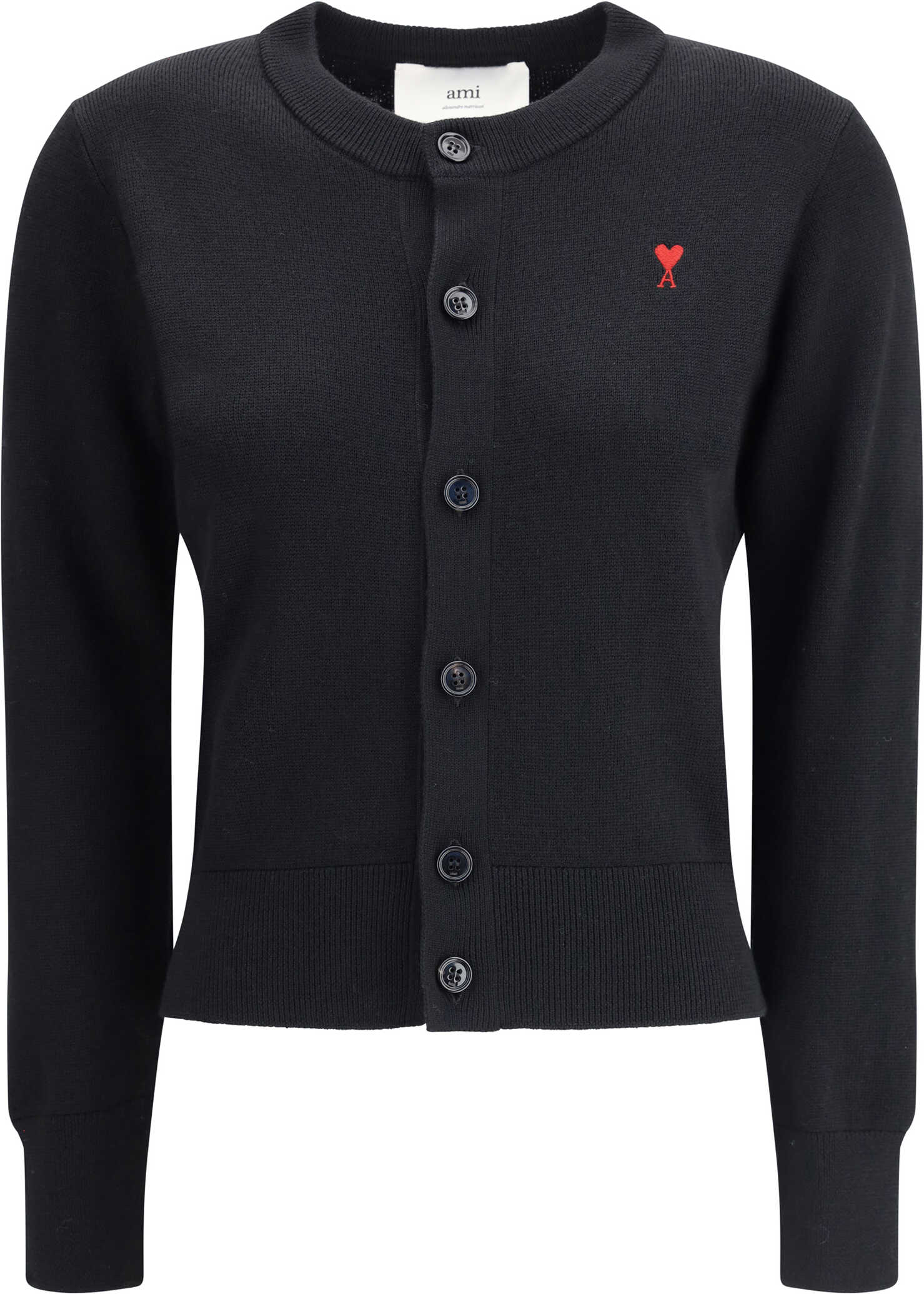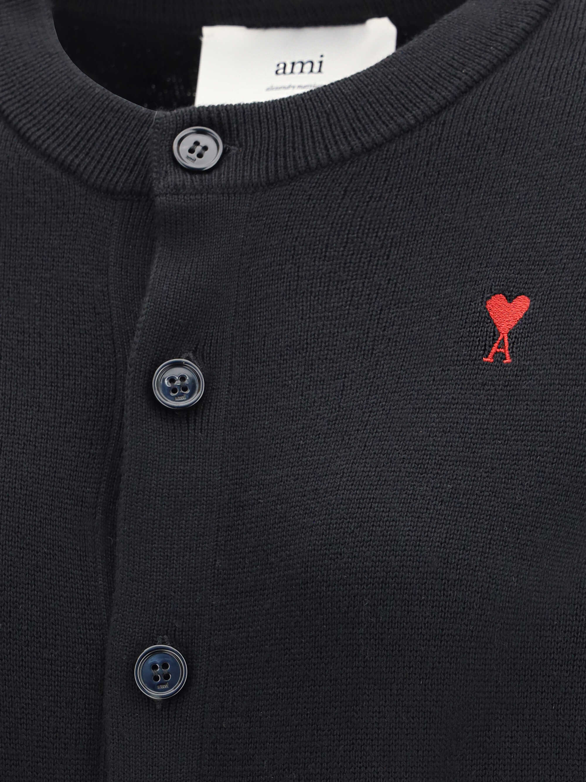 The Ami De Coeur merino wool Cardigan by Ami Paris features a front button closure and an embroidered logo on the front that adds a distinctive touch to the garment. Ribbed cuffs and hem complete the design, ensuring a comfortable, finished fit.