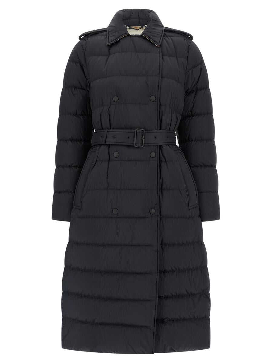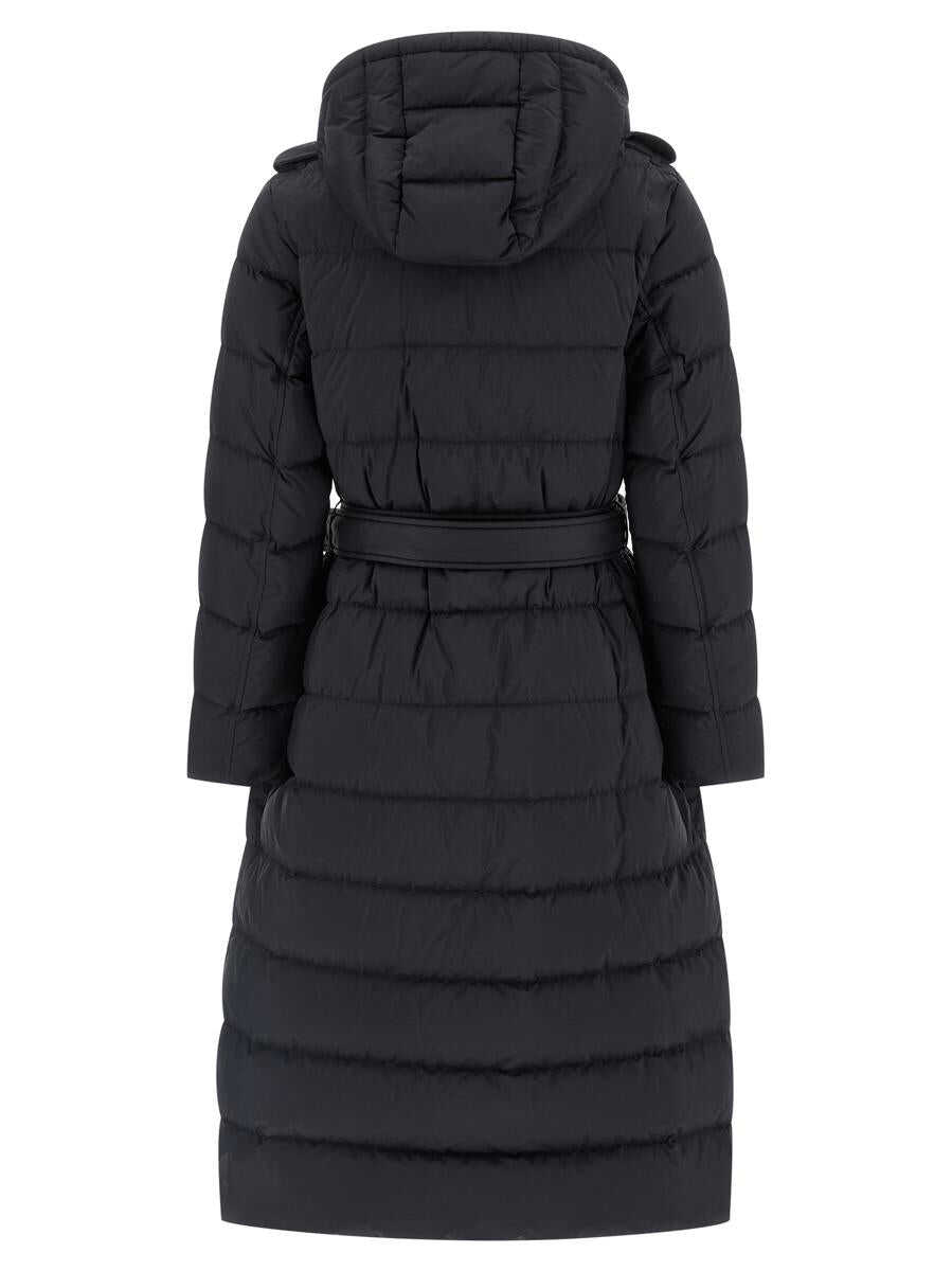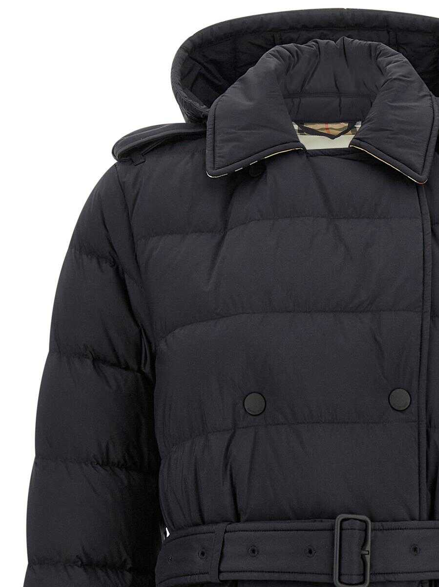 Padded and quilted trench coat, removable hood with zip, collar with check detail, double-breasted model with adjustable belt with buckle, snap button closure
