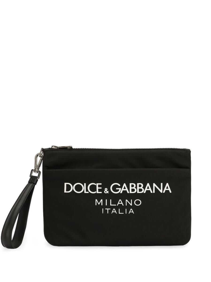 logo-print zipped wallet from DOLCE & GABBANA featuring black, logo print to the front, top zip fastening, wrist strap, front zip fastening pockets and main compartment.