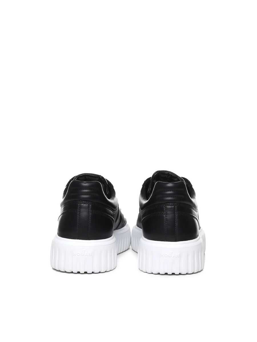 Hogan Black H-Stripes Sneakers, Leather Upper, Round Toe, Laces Closure, Round Toe, Lateral Logo, Platform: 5 cm