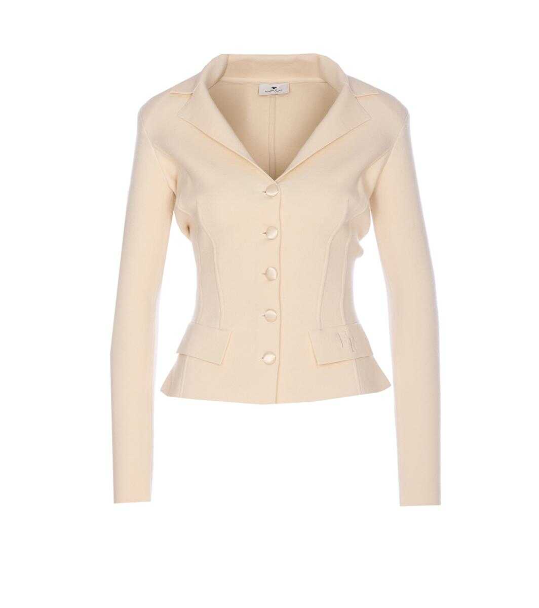 Elisabetta Franchi Milk Knitted Cardigan, Buttons Closure On The Front, Reinforced Shoulder, Reverse Detail, Long Slevees, Embroidered Logo, EU SIZE (IT)