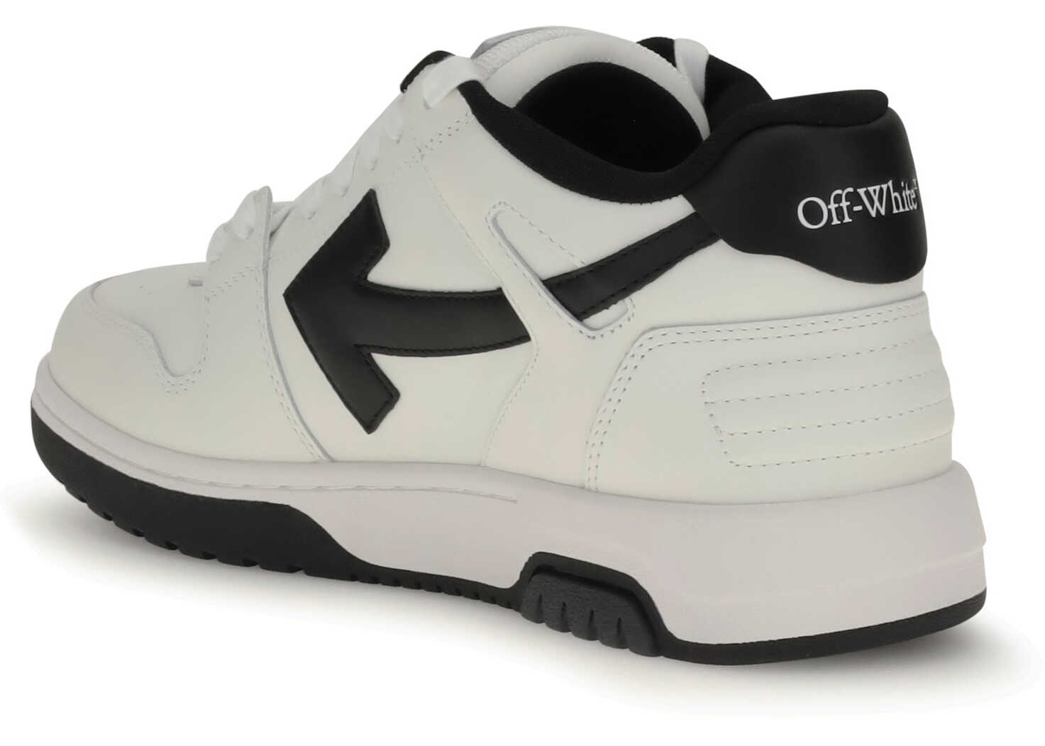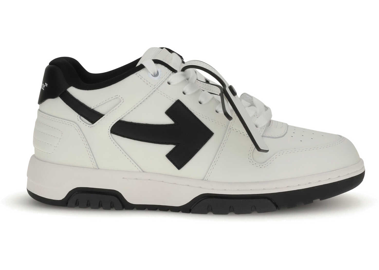 Leather Out Of Office Sneakers by Off-White feature a lace-up front closure and a round toe. The side panels are decorated with the brand's iconic Arrow logo, while the flat sole ensures comfort. A distinctive detail is the applied zipper tie tag on the front, accompanied by the contrasting logo on the heel, giving it an urban and contemporary feel.