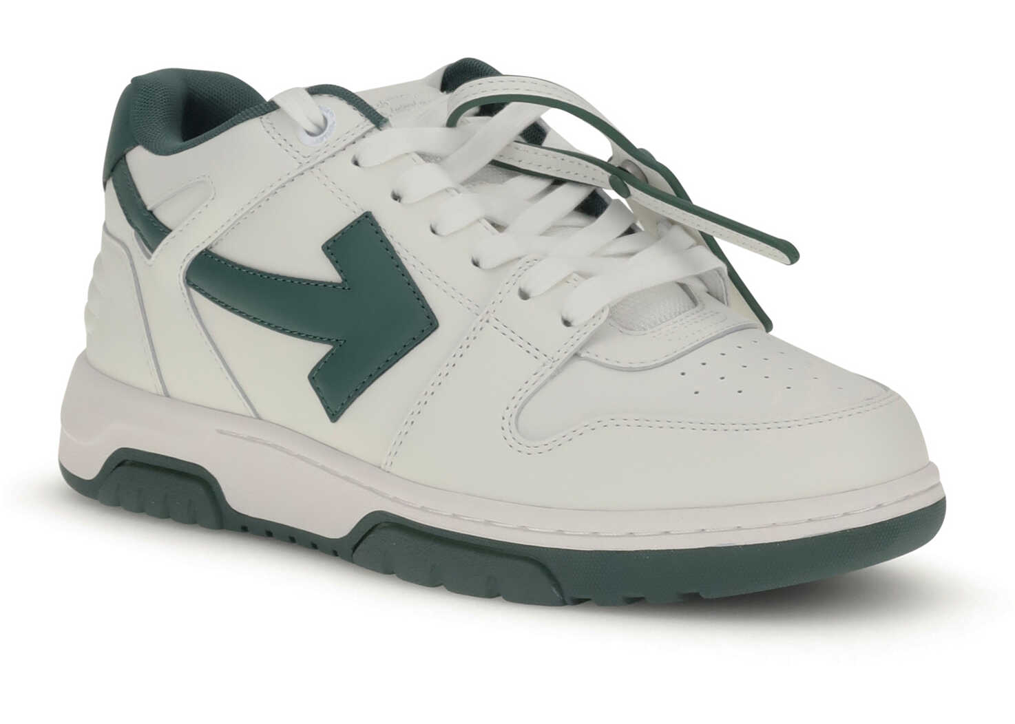 Off-White's Out of Office Sneakers feature a perforated round toe that offers breathability and comfort. The flat sole provides stability, while the iconic embossed Arrow logo on the side panel adds a distinctive touch to the design. The logo-embossed front lace-up closure allows for a customized fit, and the brand's iconic signature is pressure-printed on the back label, accentuating the brand connection. Finally, the iconic zipper tie tag applied to the front laces completes the bold and recognizable look of these sneakers.