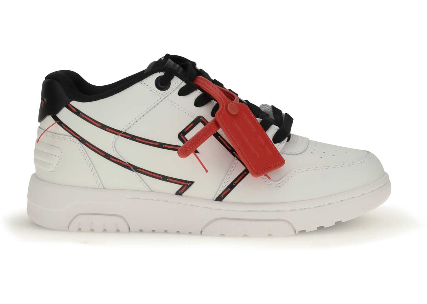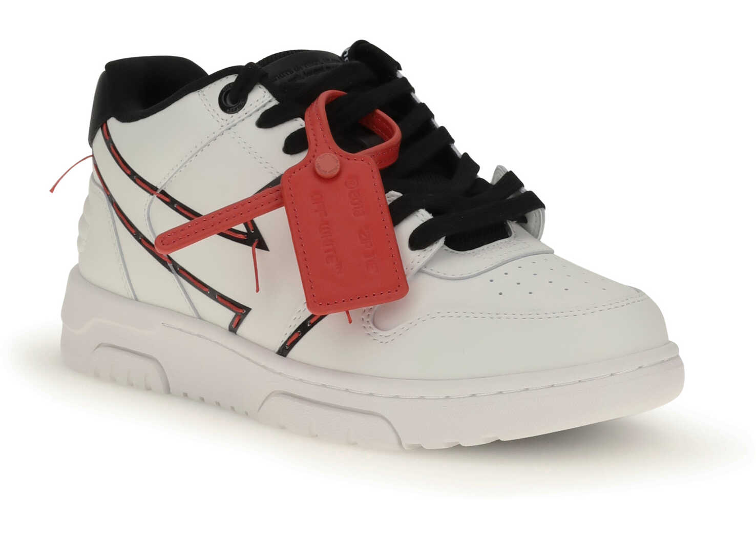 Off-White's Stitched Arrow leather Sneakers are a masterpiece of urban-chic style. The front lace-up closure ensures an adjustable and comfortable fit. The iconic side panels with contrasting Arrow embroidered logo are a distinctive detail that immediately recalls the brand's aesthetic. The round, perforated toe offers a sporty design touch while also ensuring breathability. The applied zipper tie tag on the front adds a signature Off-White accent, while the contrasting logo on the heel completes the look with a recognizable, luxe touch.